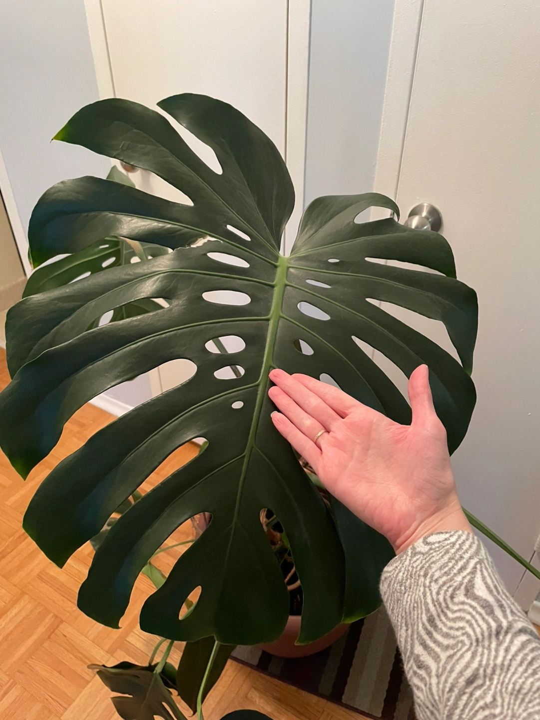 Very large and beautiful leaves. (See second photo for size compared to hand)