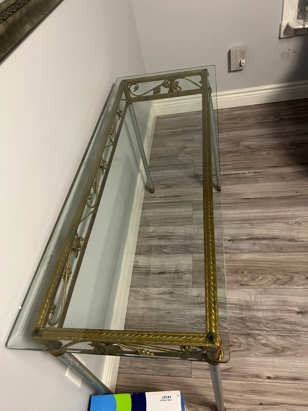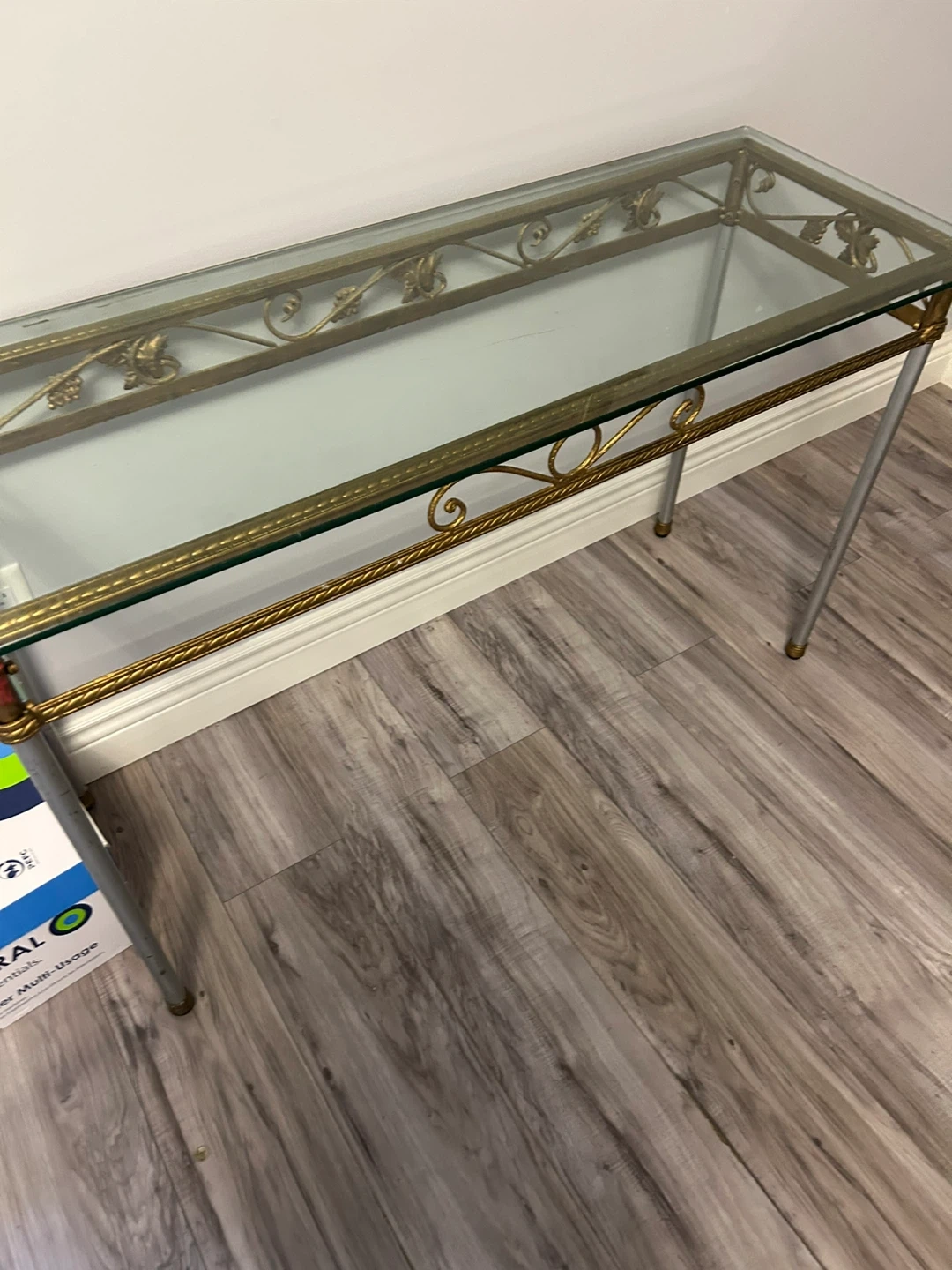 Glass Top Console Table with Gold Accents