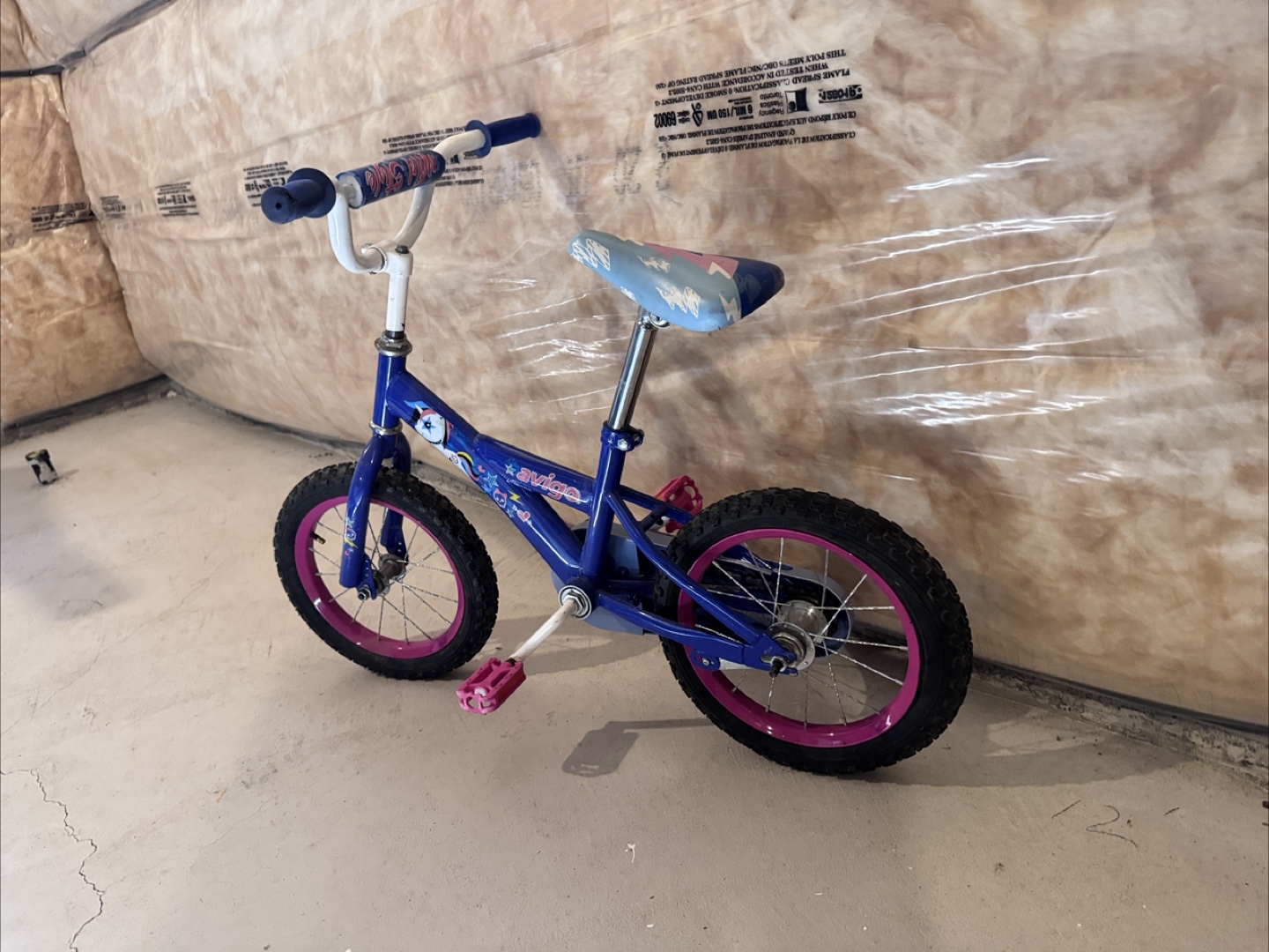 Selling a cute Avigo kids' bike! It's in good condition and ready for a new rider. The bike features a blue frame with pink accents on the wheels and pedals. Perfect for little ones learning to ride!