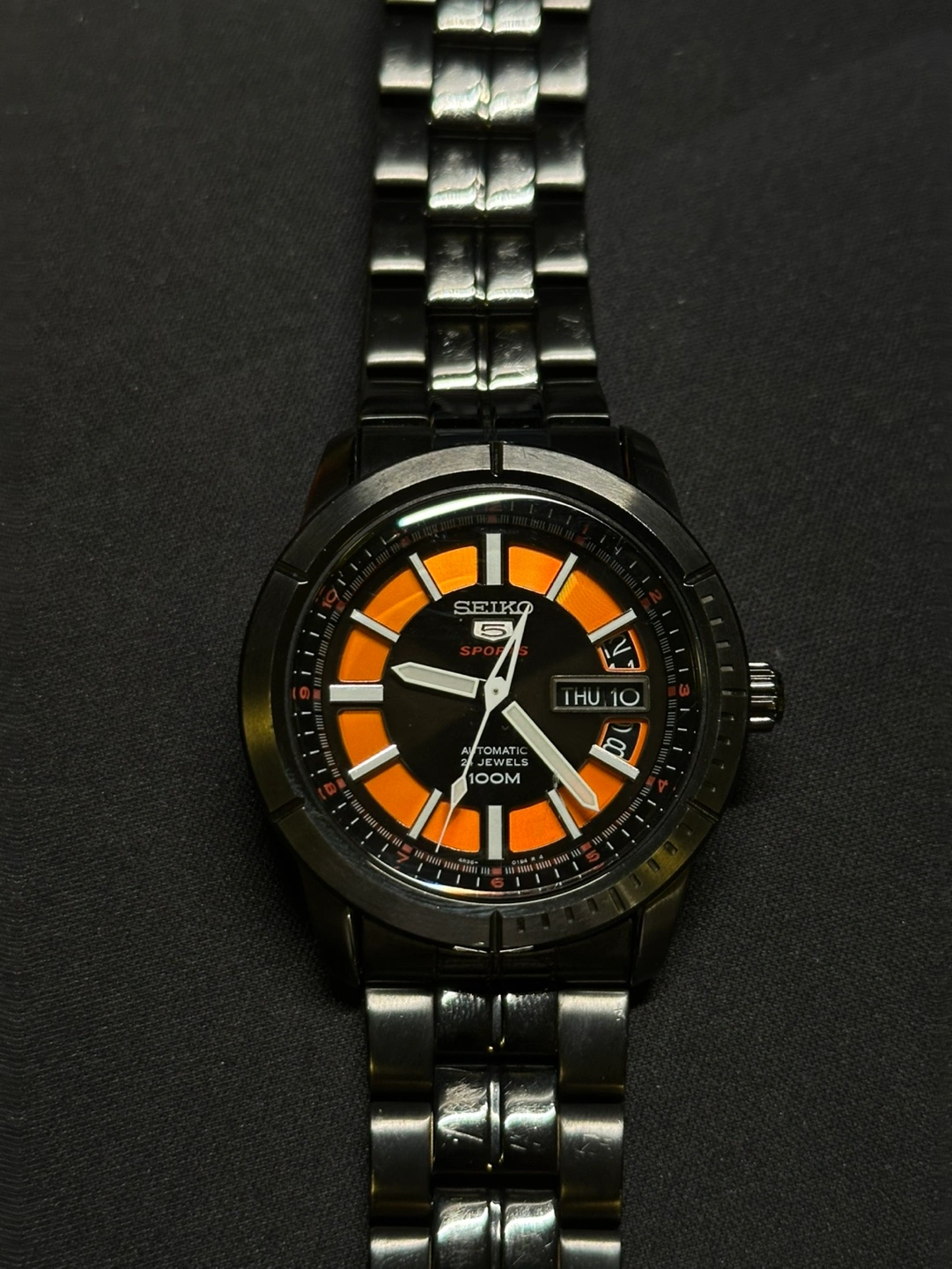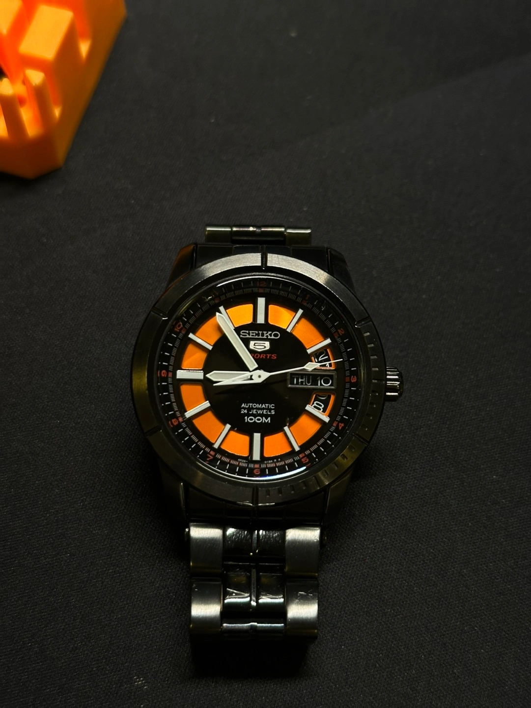 Seiko 5 Sports Automatic Black Orange Mens Watch