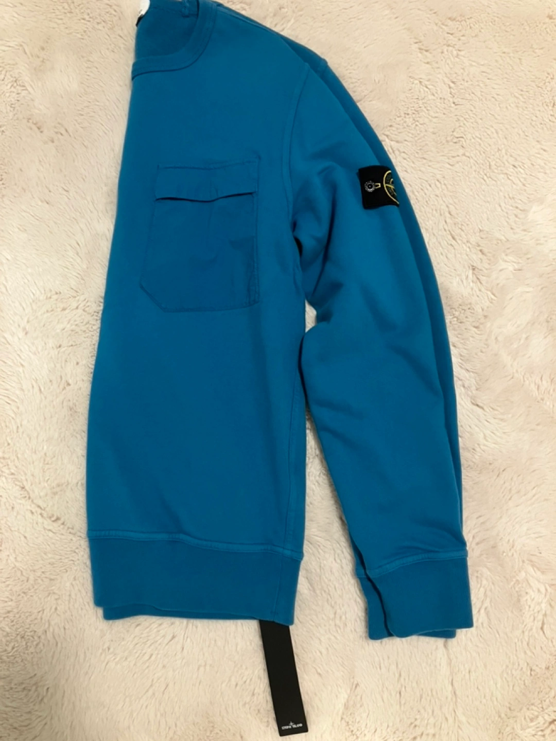 Stone island cotton fleece dyed chest pocket crewneck. Cobalt blue.