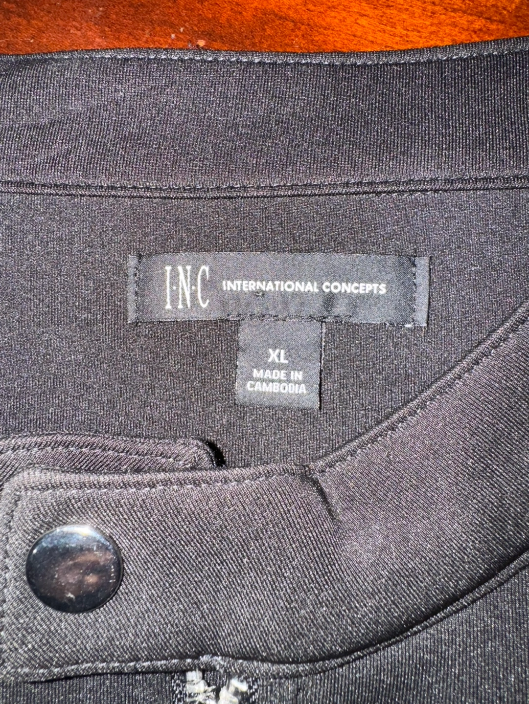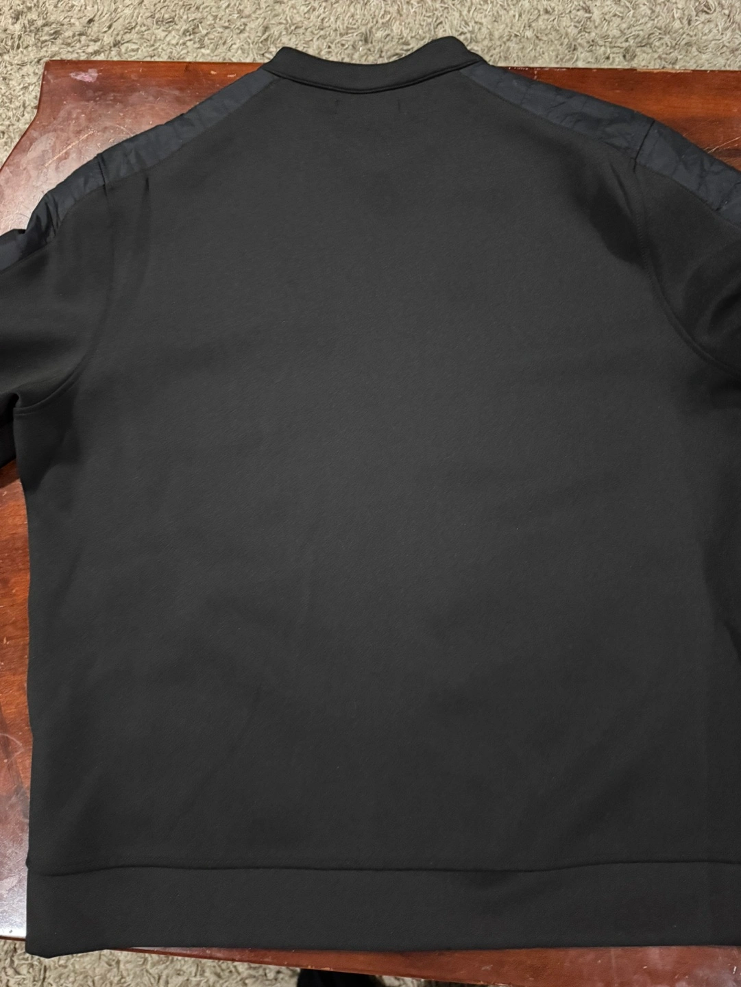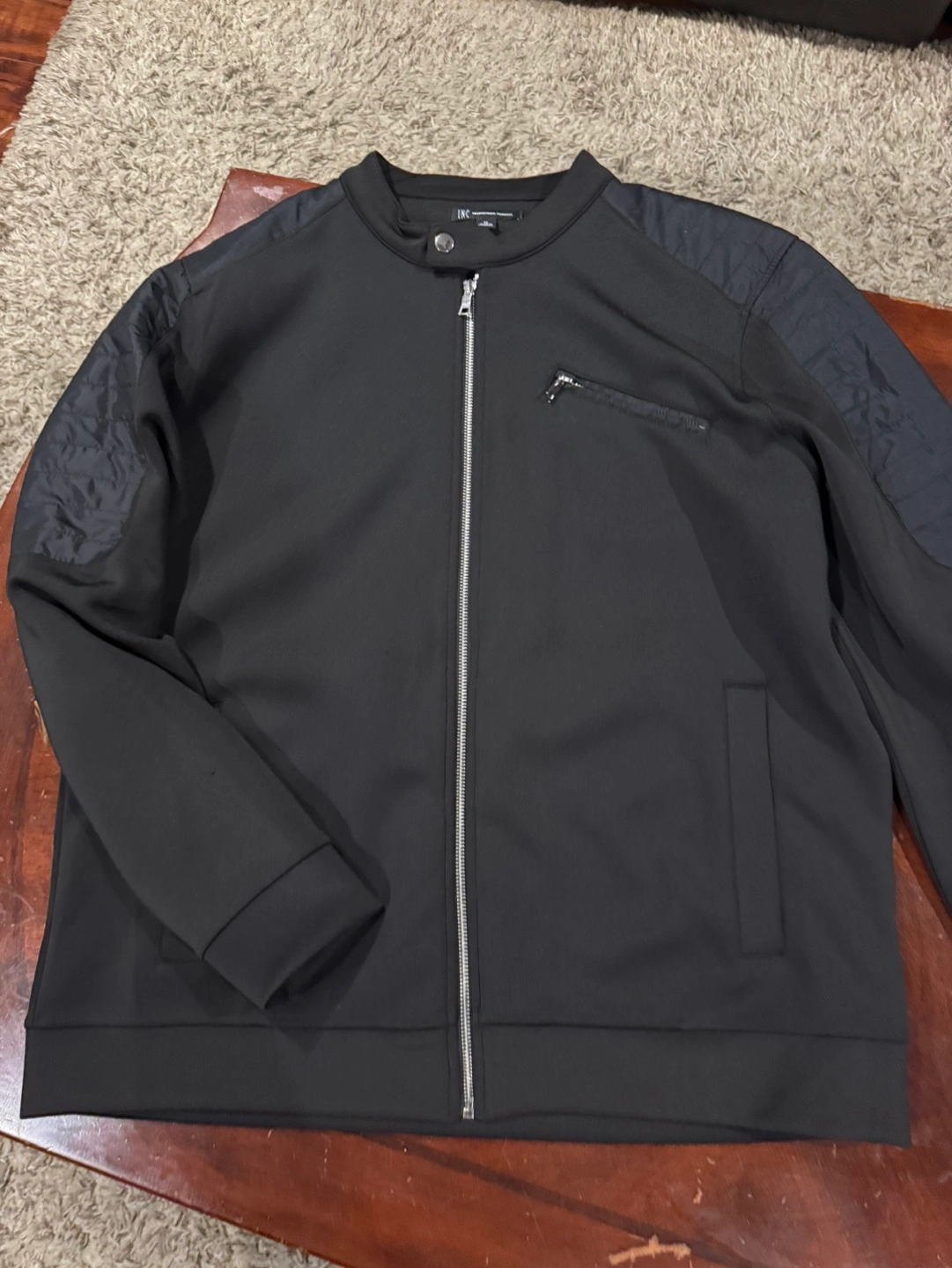 90Men's black zip-up jacket. Size XL. Features quilted shoulder accents. Silver zipper. Two pockets. Great for layering.