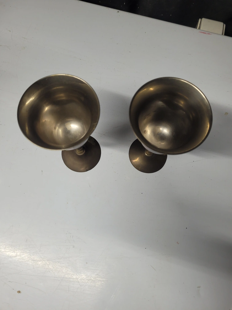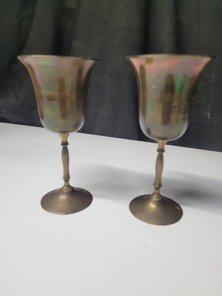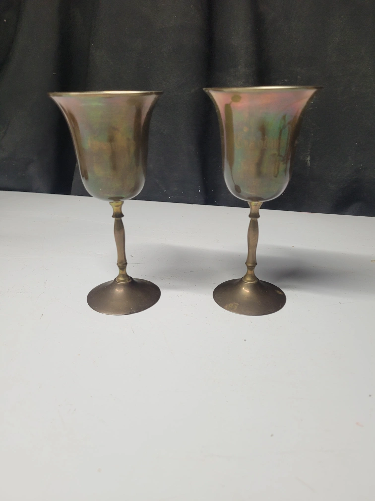 Set of two brass goblets. Elegant design. Unique patina. Perfect for display or special occasions.