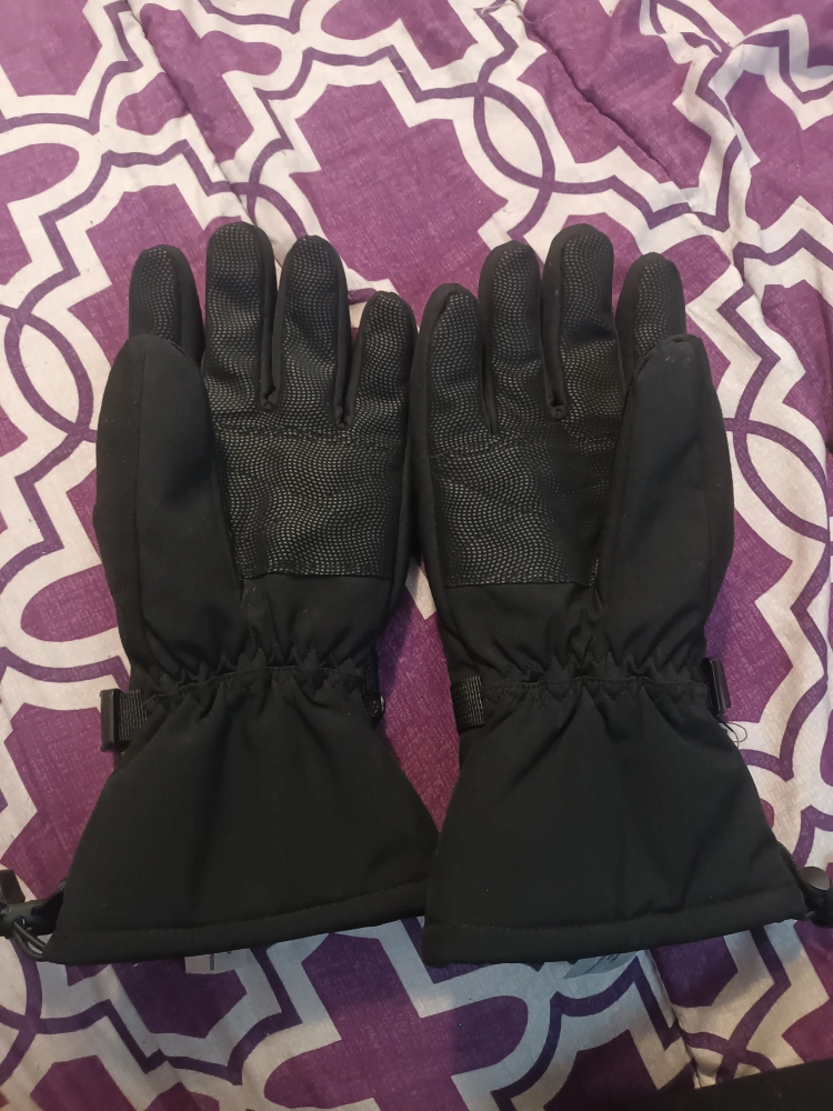 Waterproof winter gloves. Size XL. Black colour. Adjustable wrist straps. Small zippered pocket on one glove. Excellent for skiing or snowboarding.