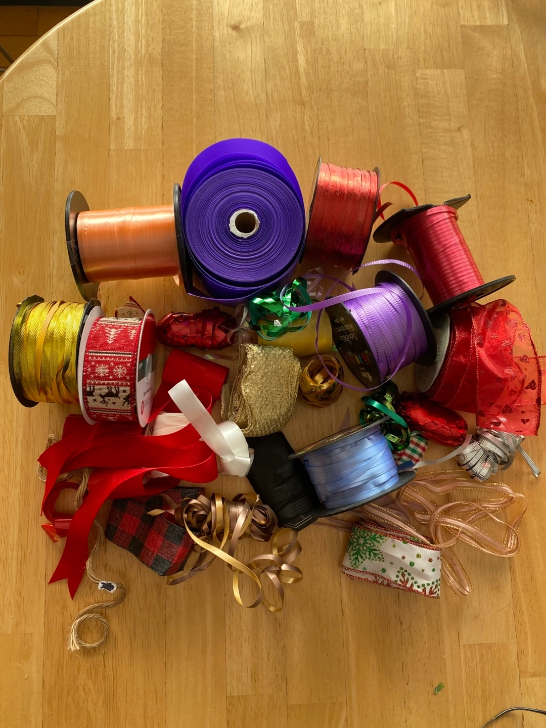 666•Large variety of ribbons, colours and patterns included •Great for crafting or gift wrapping •Excellent condition, clean •smoke-free, pet-feee environment •PPU **LOCATION: Jane & Lawrence**