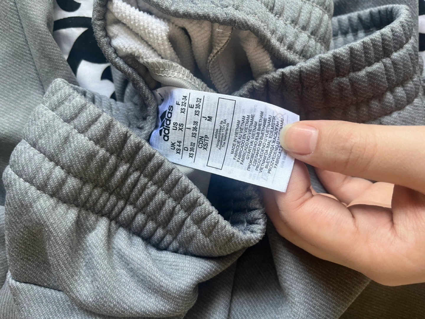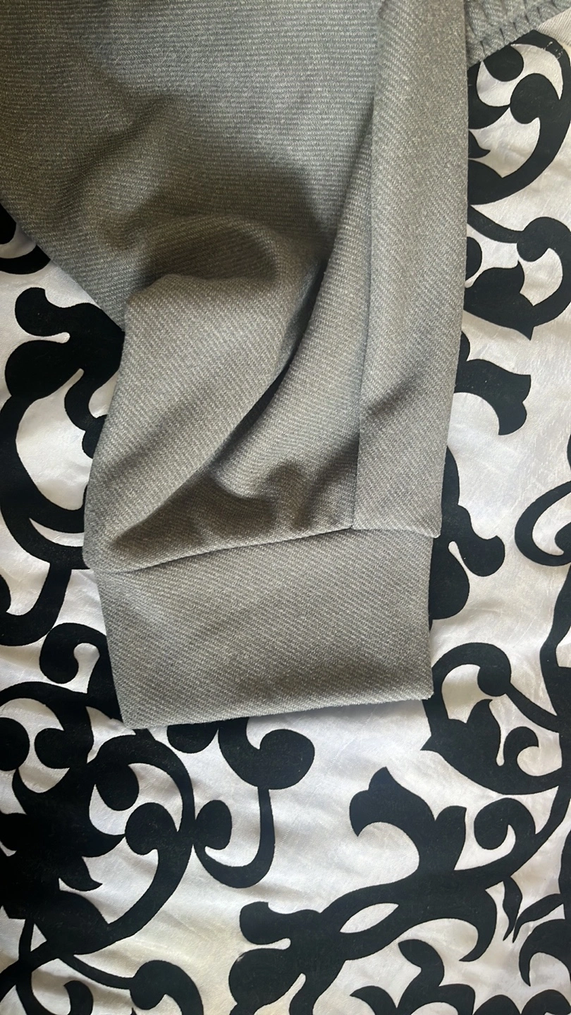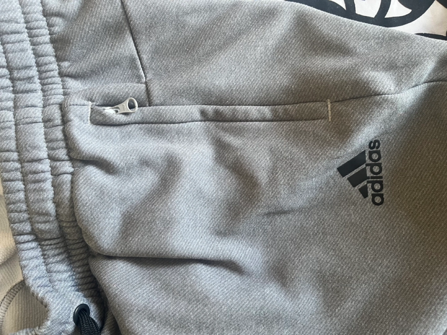 100% polyester fleece lined running pants by Adidas. Two zippered pockets, a drawstring waist and cuffed ankles. Very warm and comfy.