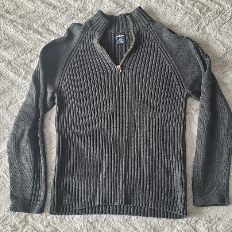 Men's charcoal grey ribbed sweater. 1/4 zip closure. Long sleeves. Like new condition