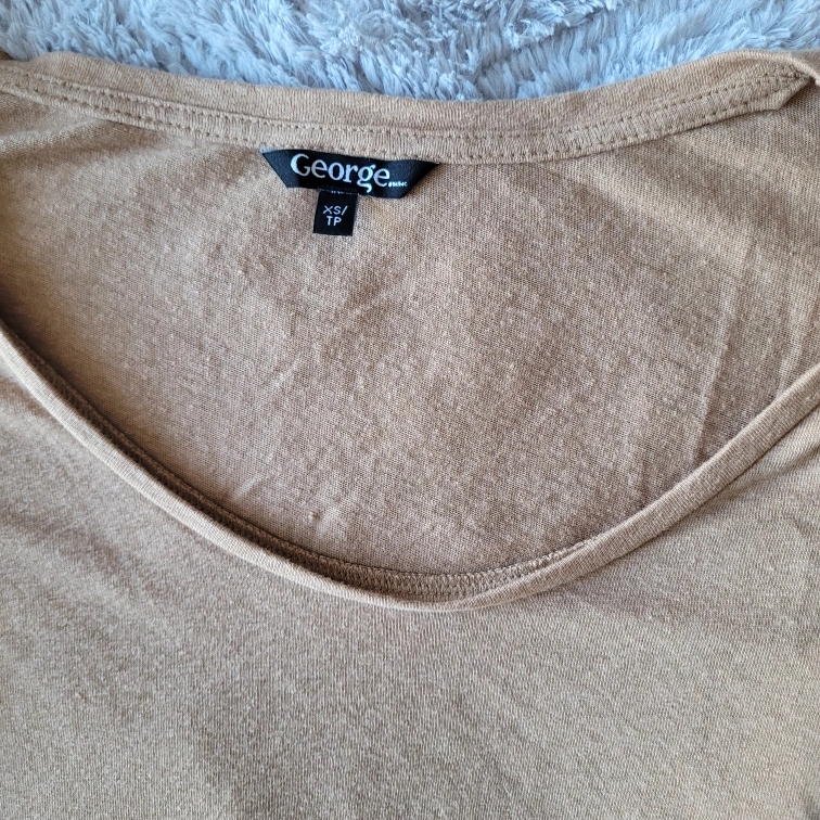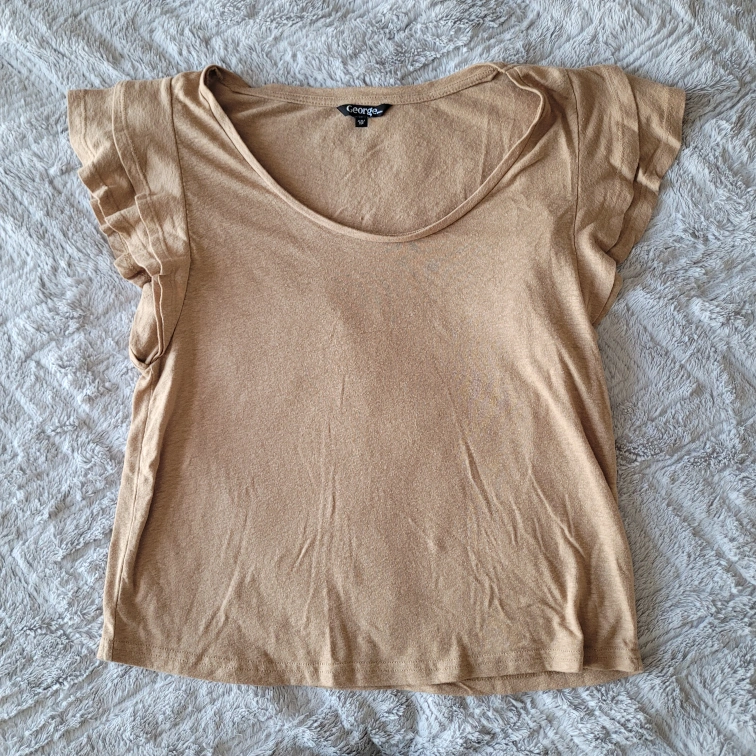George Women's Tan Ruffle Sleeve Blouse, Size S