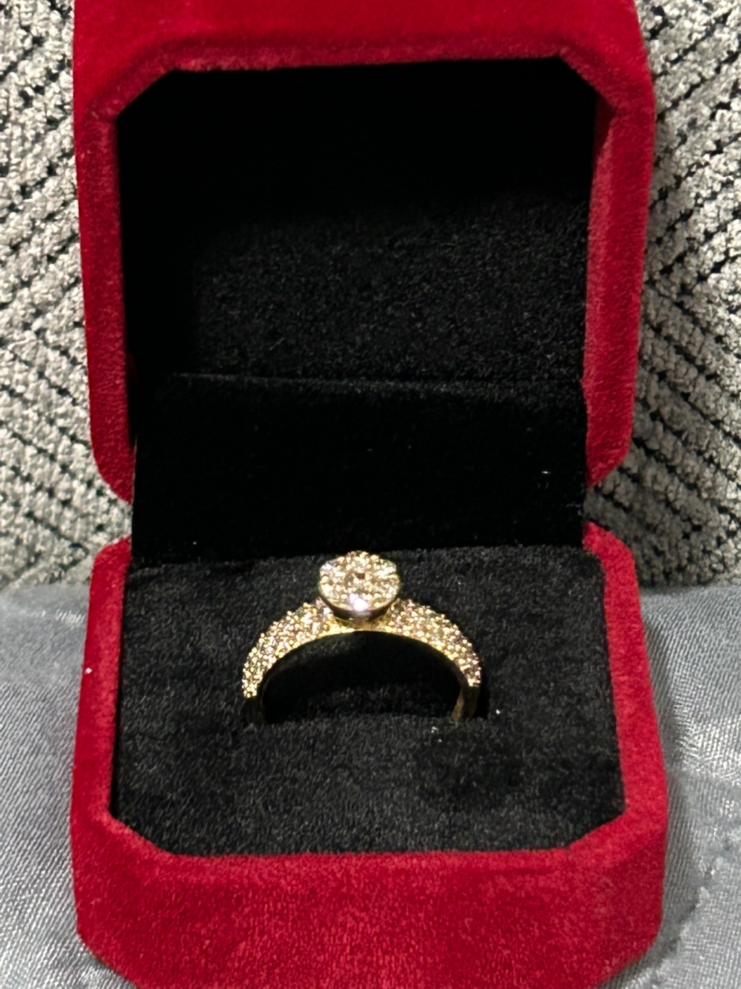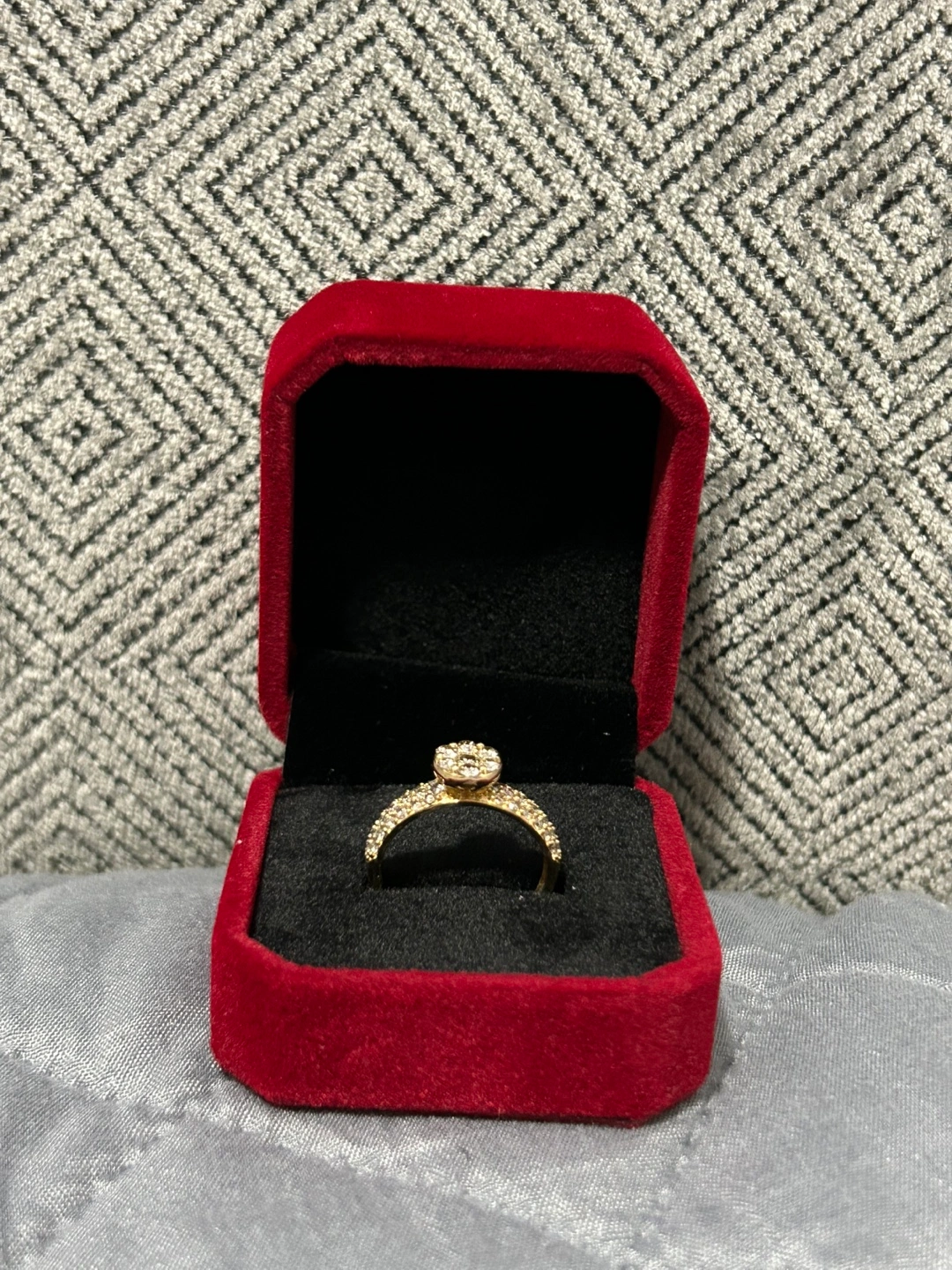 Gorgeous 18K Japan gold diamond ring. Natural diamond. Comes in a red velvet ring box and gem identification report.