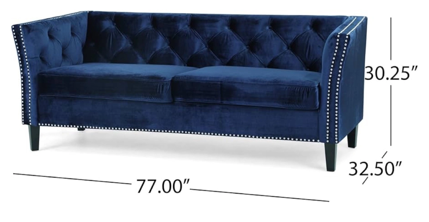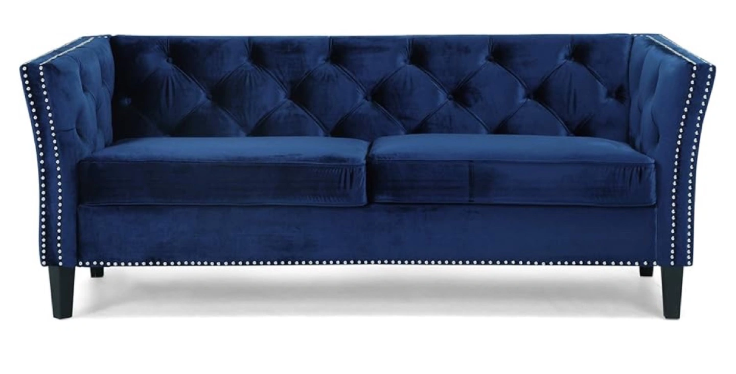 Christopher Knight Navy Blue Velvet Button Tufted Sofa