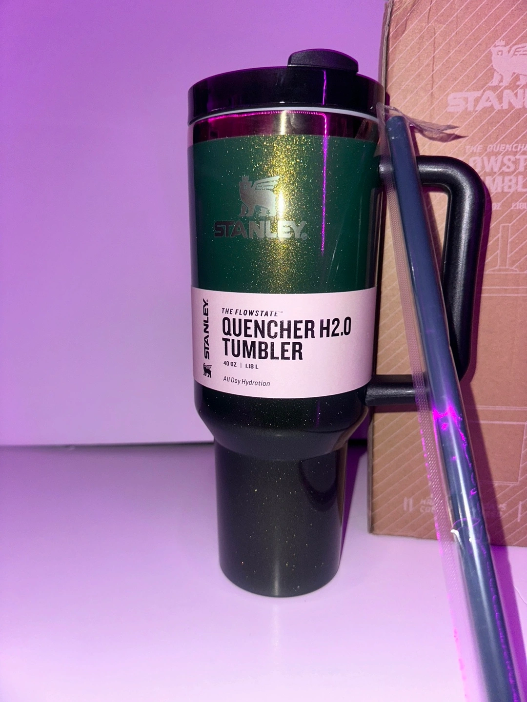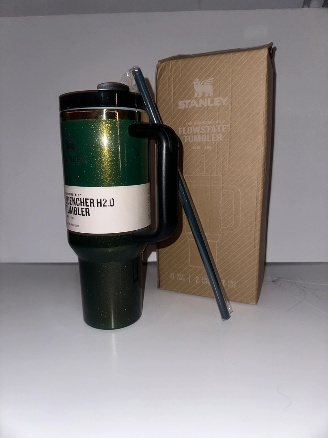 76New WICKED movie Stanley Quencher H2.0 Flowstate Tumbler. 40 oz capacity. Green and gold colour. Includes straw and lid. Sealed box.