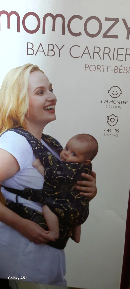 44Used baby carrier. Suitable for 3-24 months. Features a stylish galaxy print. Excellent condition.