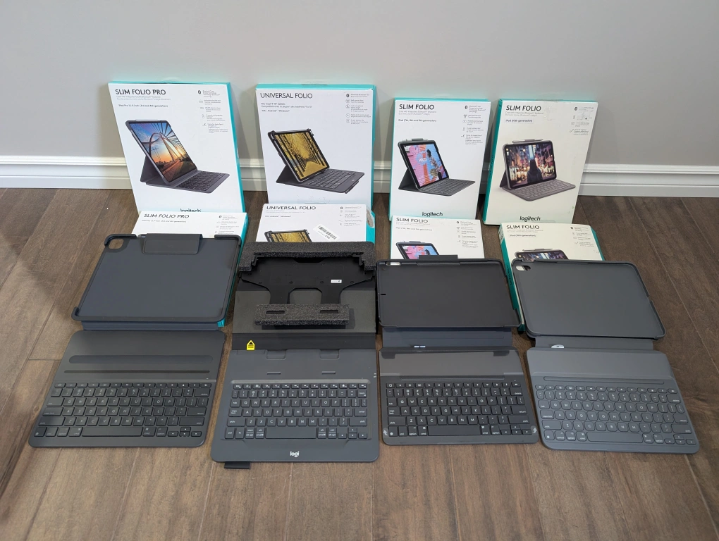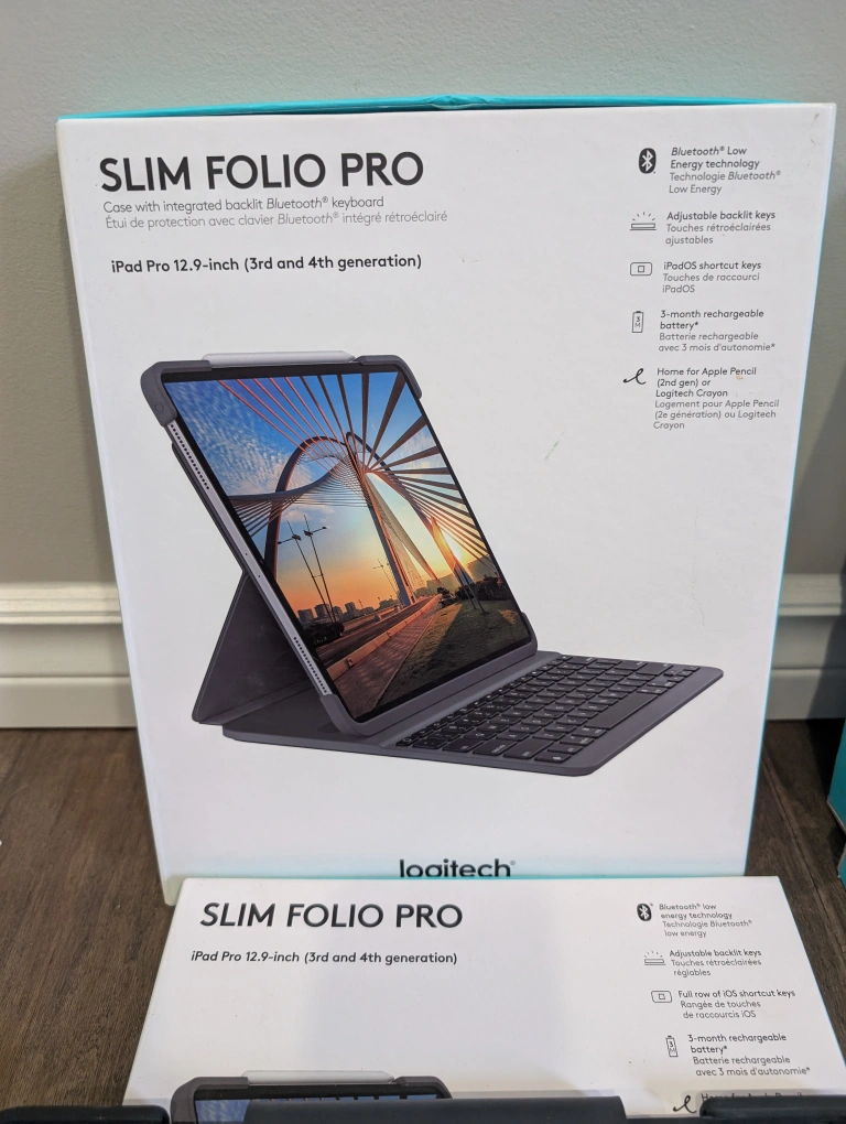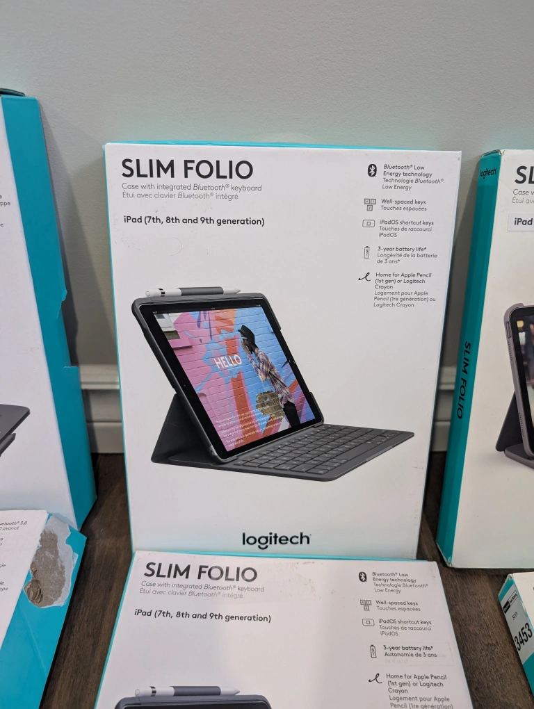 New Logitech iPad keyboard cases. Various models available for different iPad generations. Slim Folio and Slim Folio Pro options. Integrated Bluetooth keyboards. Brand new Logitech keyboards and cases for iPads for sale. Prices are FIRM and listed below.