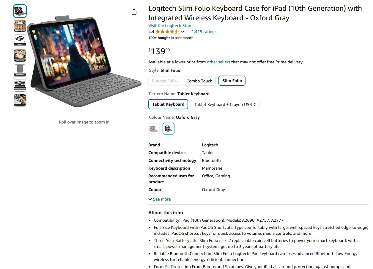 Slim Folio for iPad 10th generation $75