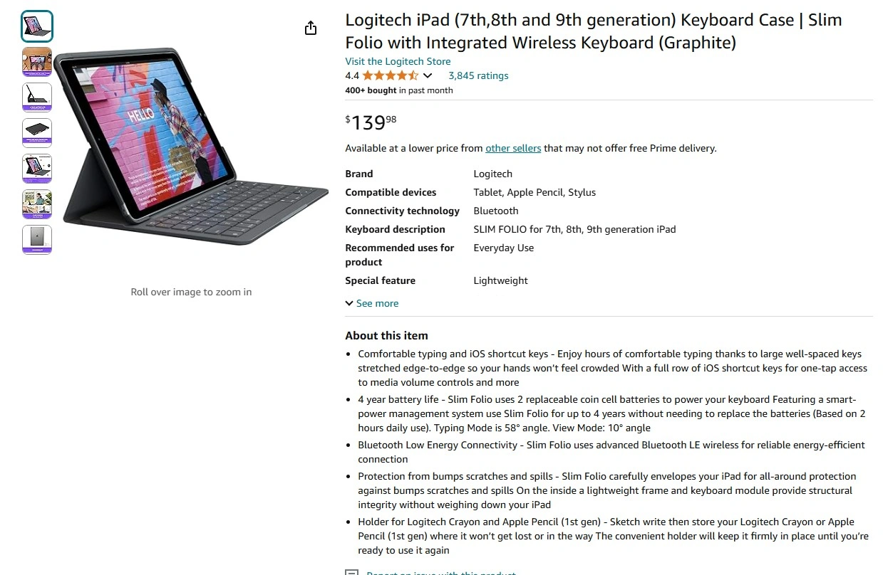Slim Folio for iPad 7th, 8th, 9th generation $75