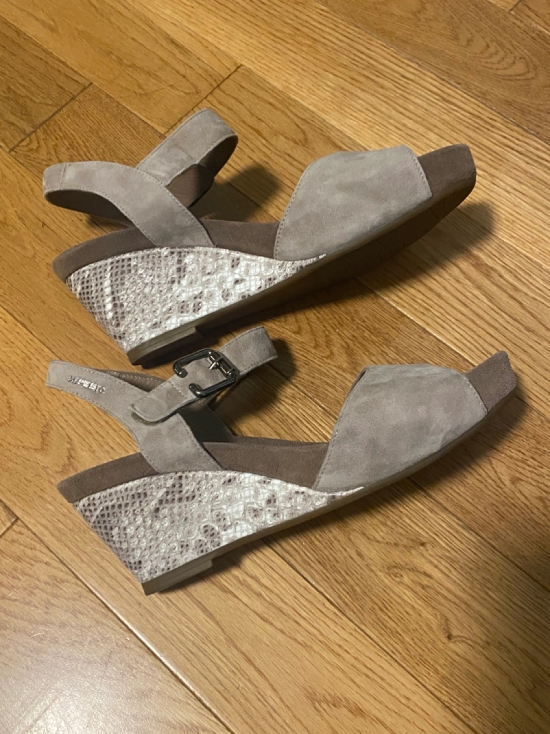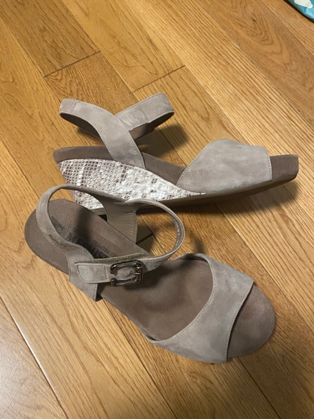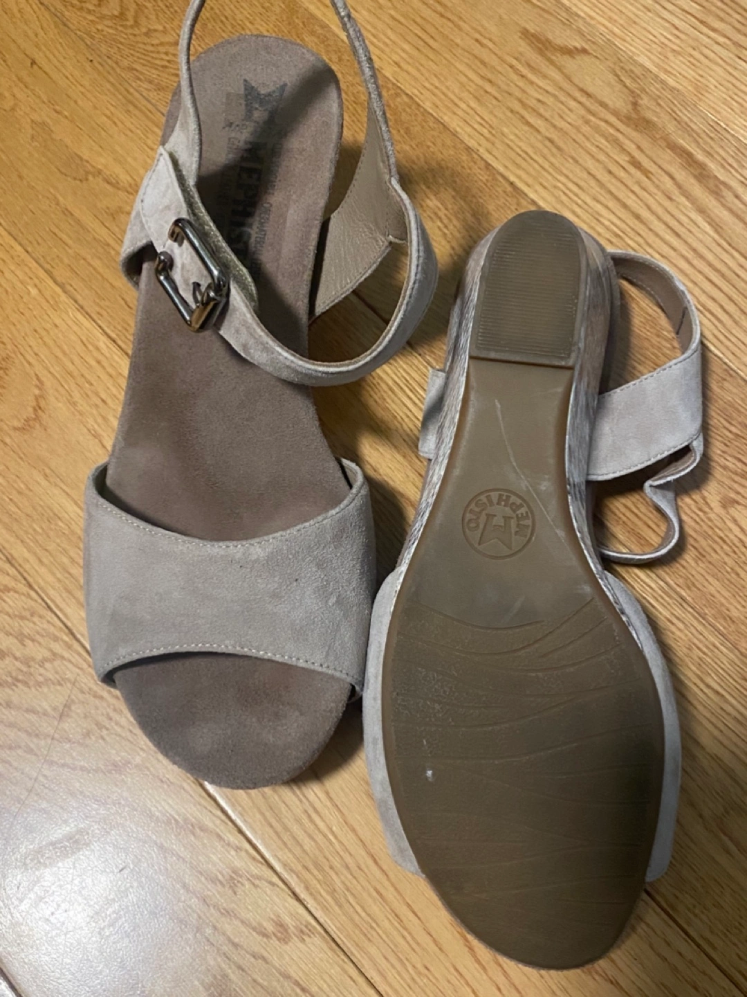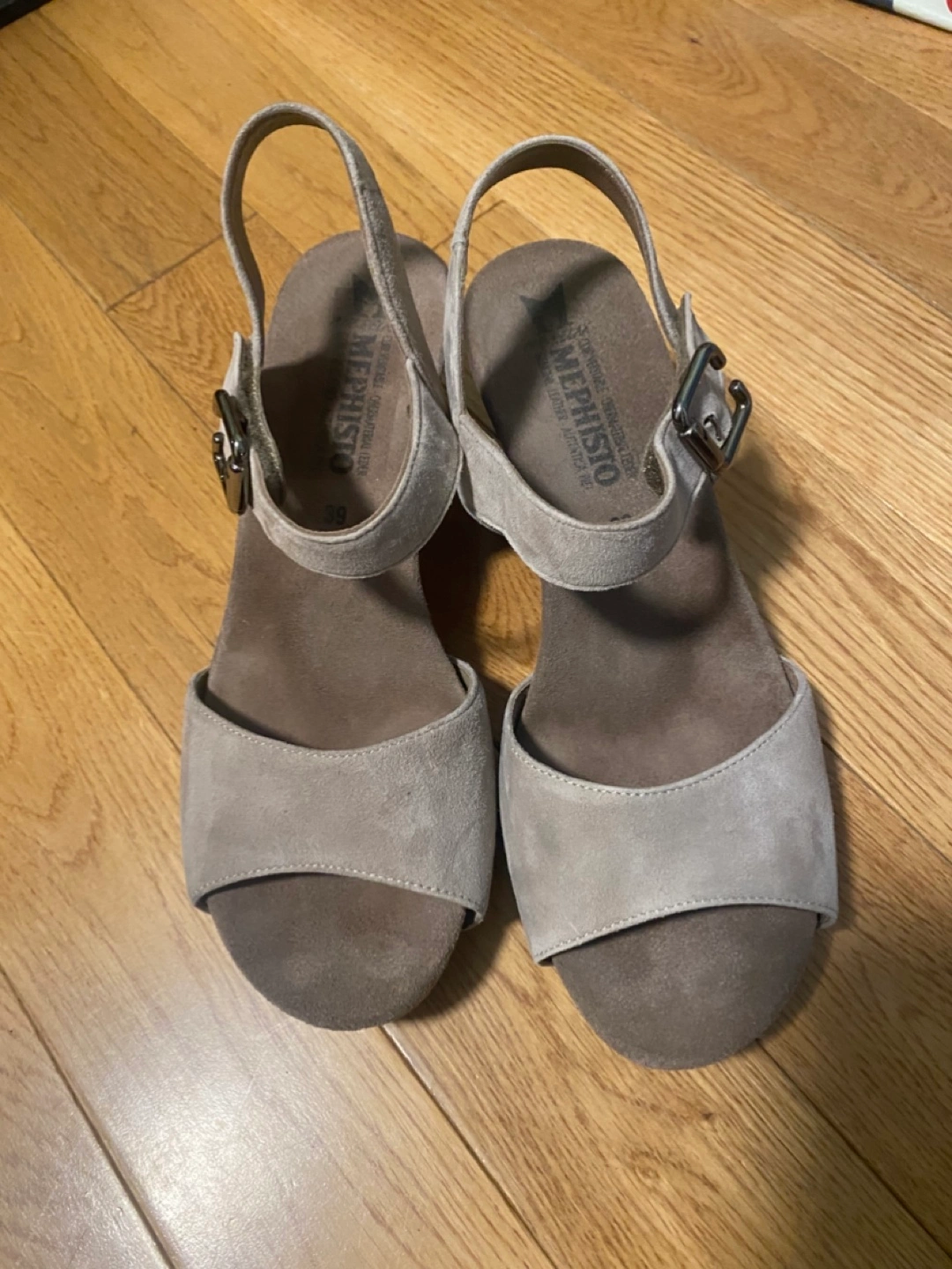 Women's Mephisto Beige Suede Wedge Sandals - Size 39
