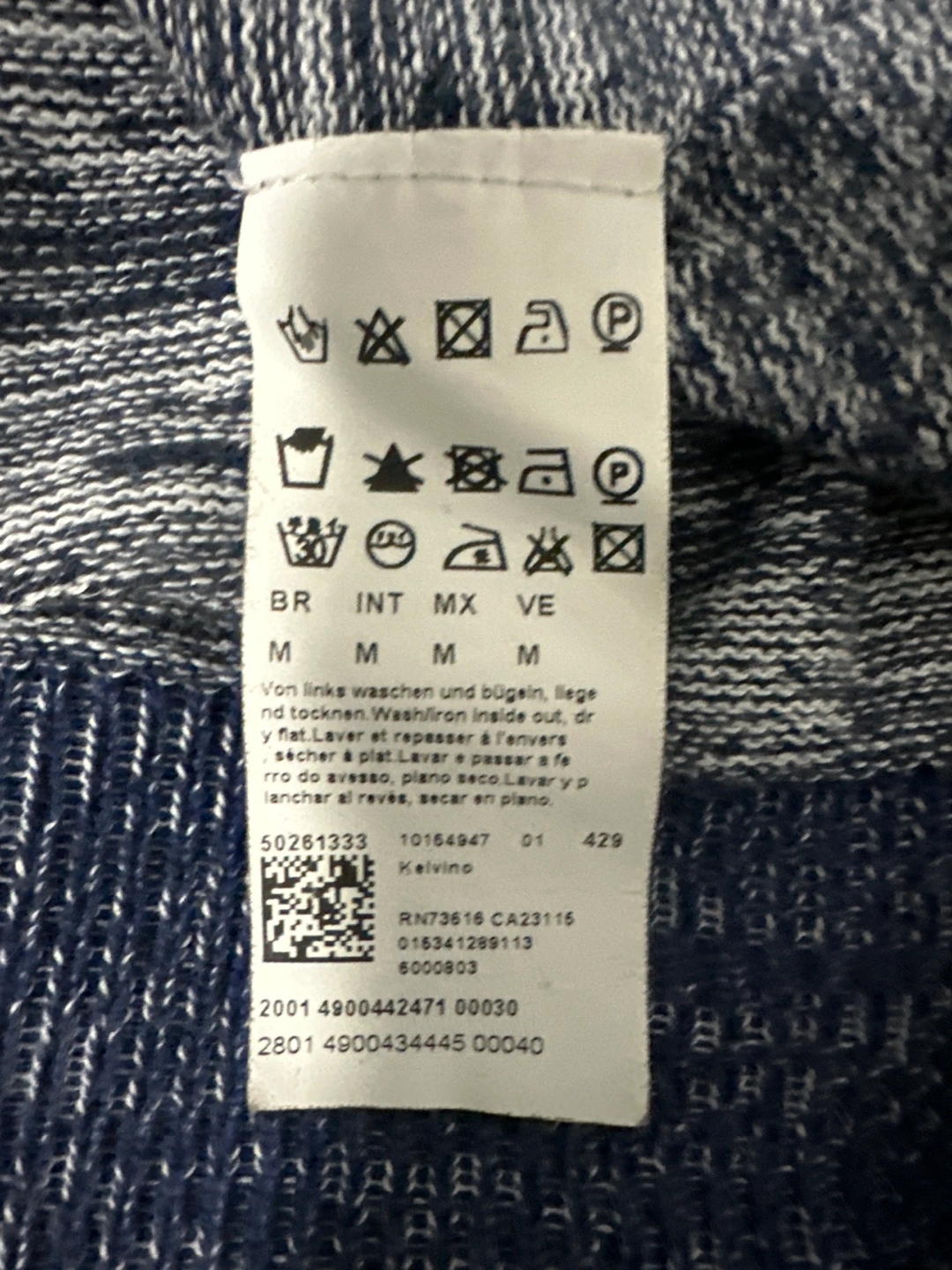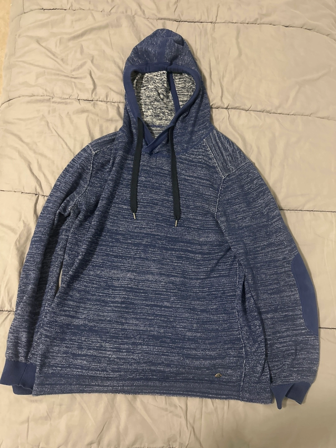 Men's size medium Boss Orange Label hoodie. Blue and white heather pattern. Long sleeves, drawstring hood.