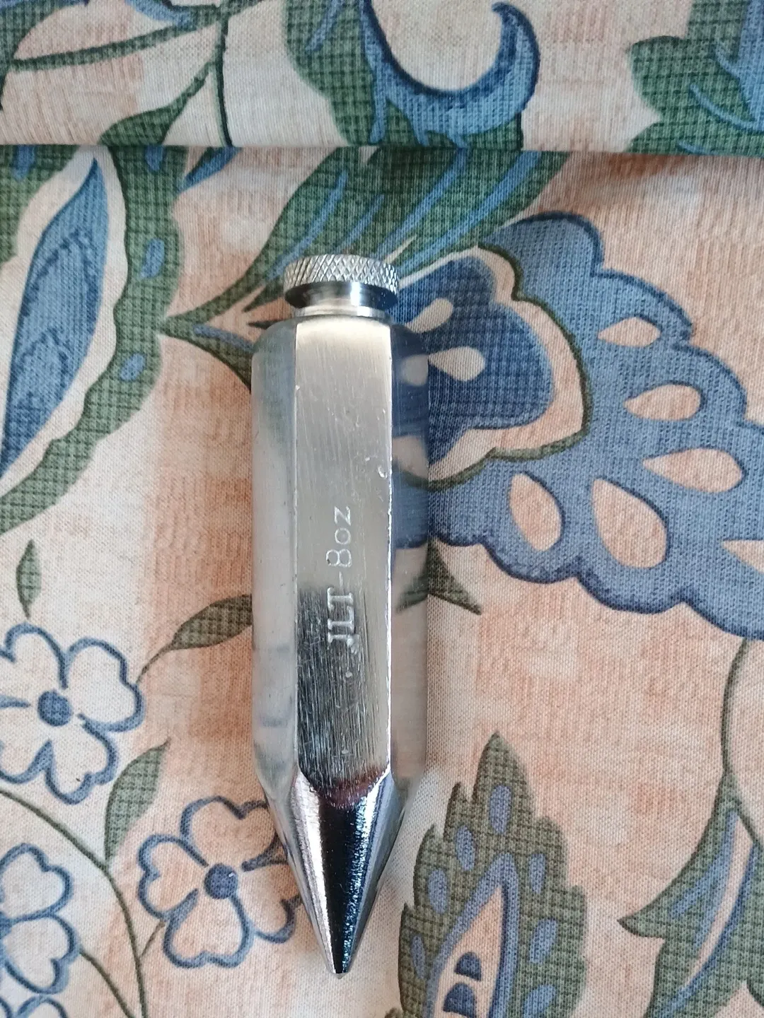 This is a plumb bob, weighing 8oz. It's made of metal with a threaded top for attaching a string. Essential for any construction or DIY project requiring a vertical reference line!