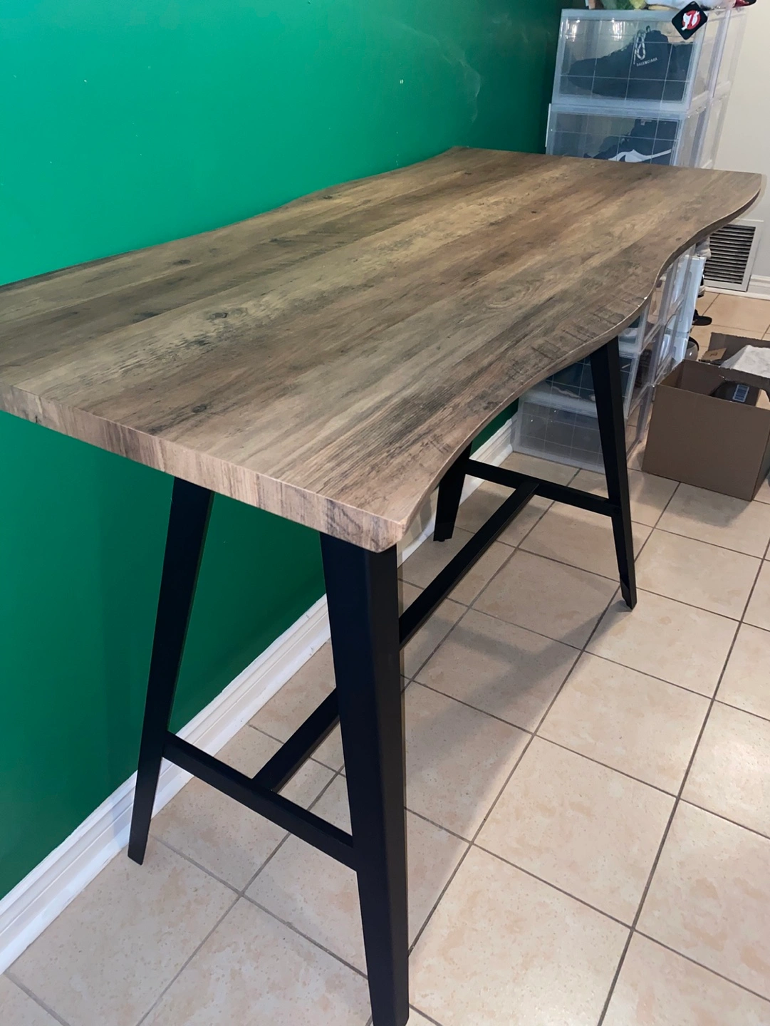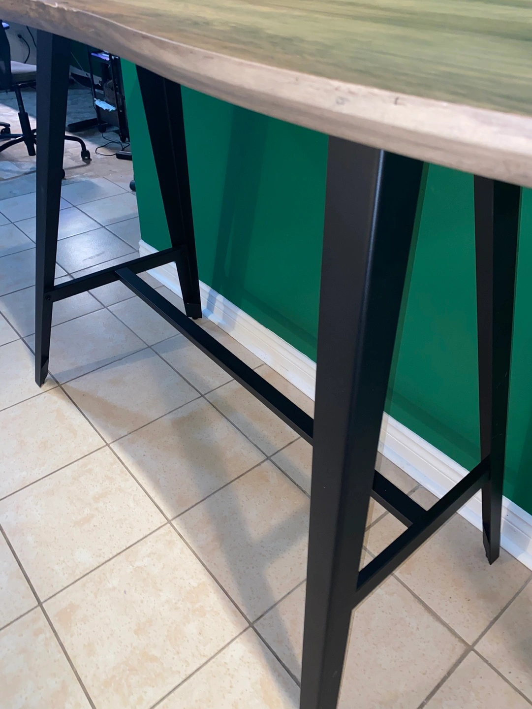 A stunning live edge replica, the Jerry bar table features a real wood look and touch that will fool the best of us! The faux-wood top is an ease to clean and breeze to maintain. Paired with sturdy iron legs, Jerry will give a rustic touch to your decor.