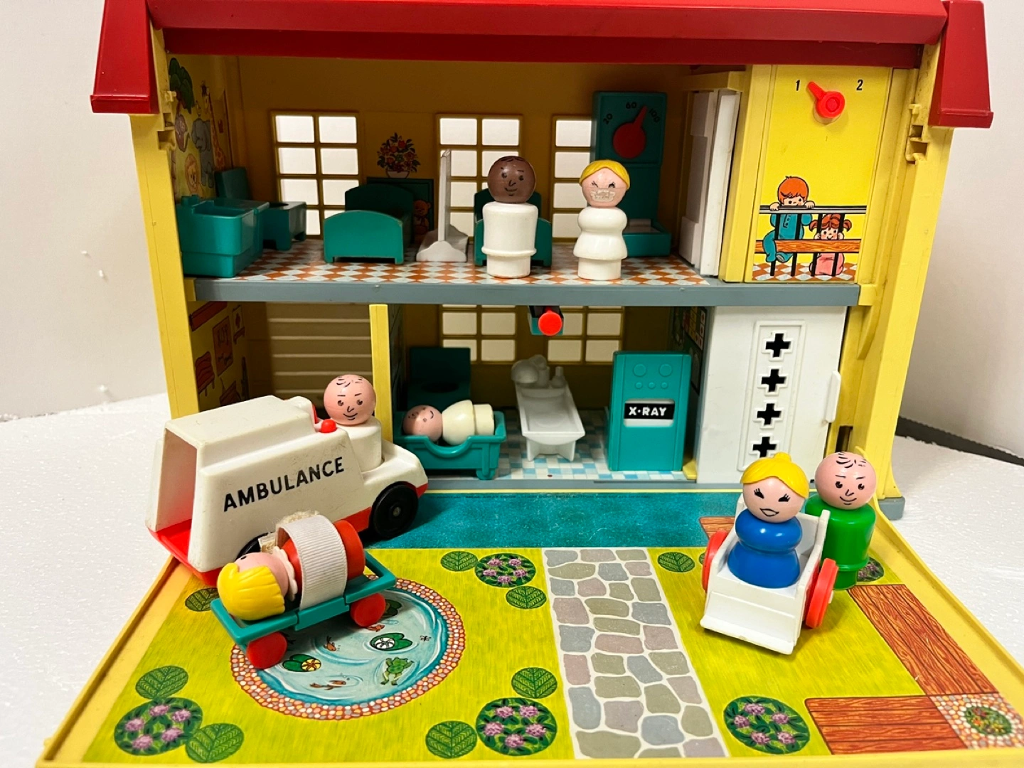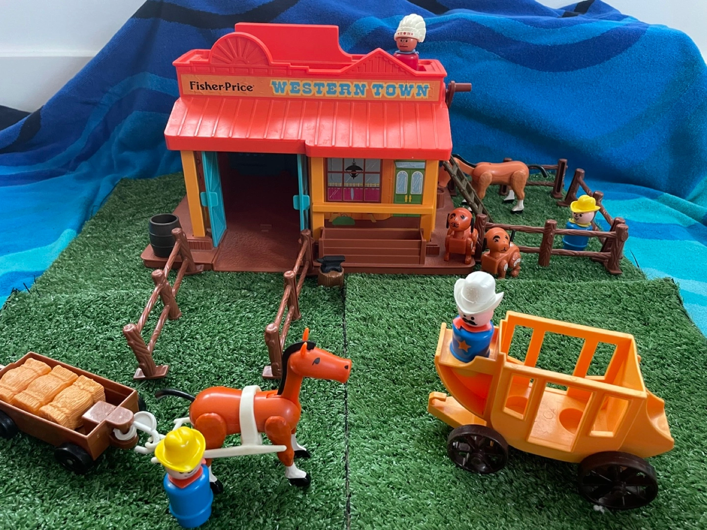 Massive collection of vintage Fisher-Price Little People playsets. Circus Trains, castles Schoolhouse, Western Town, Camper, Hospital and many more. Figures and accessories, rare items. ASK me for anything Fisher Price and I can almost guarantee I have it! Large items: Kitchen Sets, McDonalds Drive Thru’s Many vintage Fun with Food sets even the wedding cake!