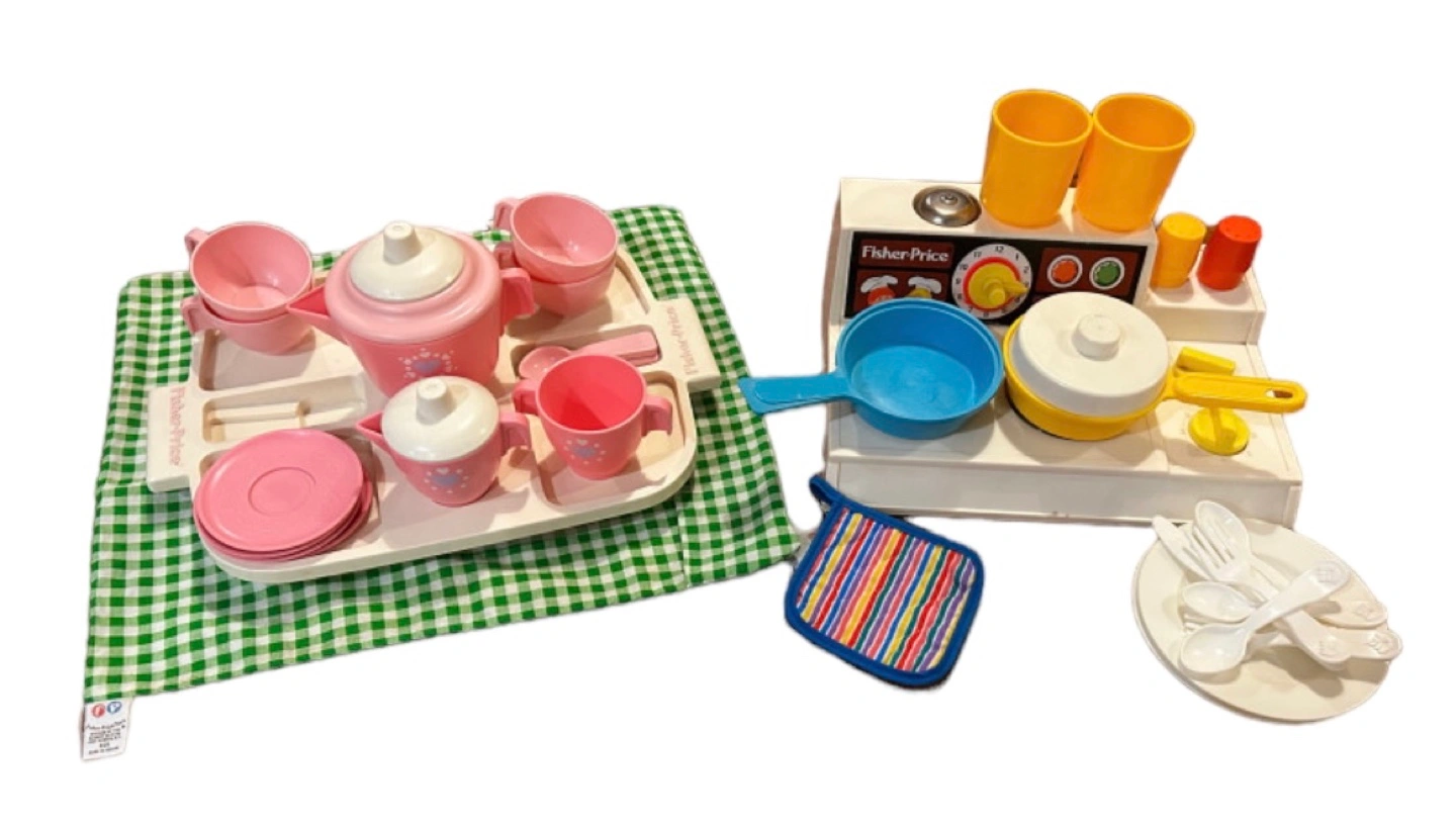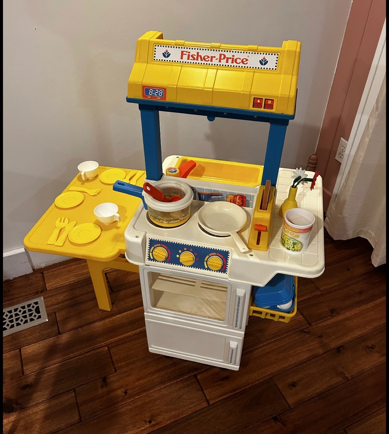 Adorable vintage Fisher-Price kitchen playset. Includes stove, oven, sink, and various accessories. Great condition for its age. Perfect for imaginative play.