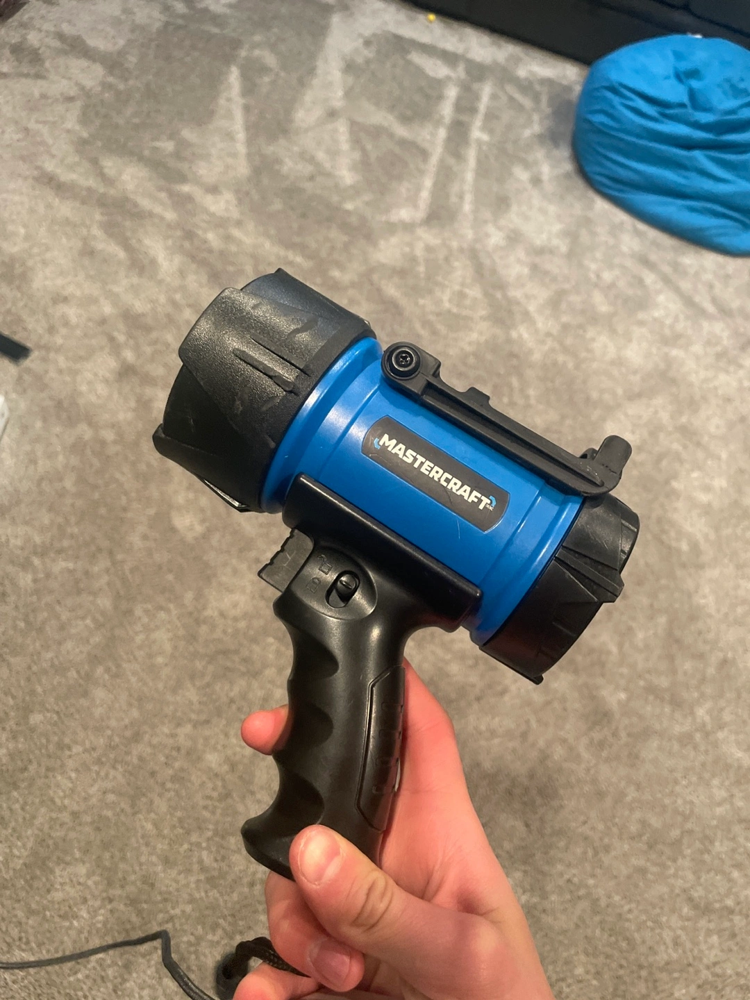 Portable and powerful LED work light. Features a comfortable grip and durable construction. Rechargeable battery. Perfect for various tasks.