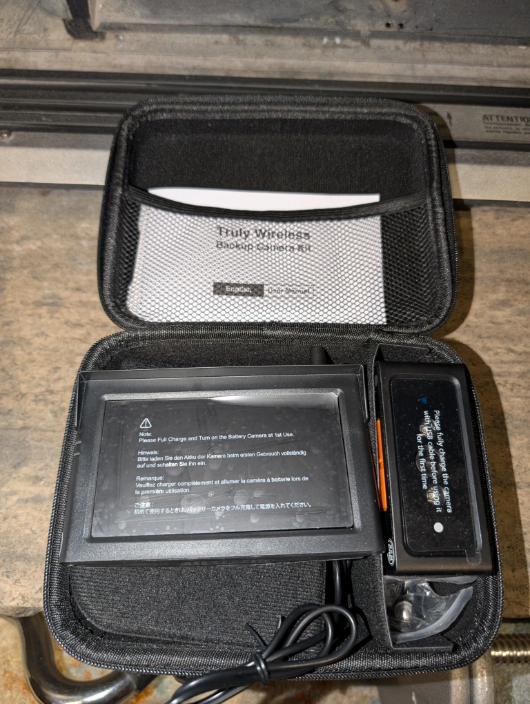 37Brand New wireless backup camera. Great for towing boats, RV, Motorhomes, etc It can be installed via magnetic backing, included backplate or screwed for a permanent install. Full details can be found here on Amazon. https://a.co/d/1bb0RCo