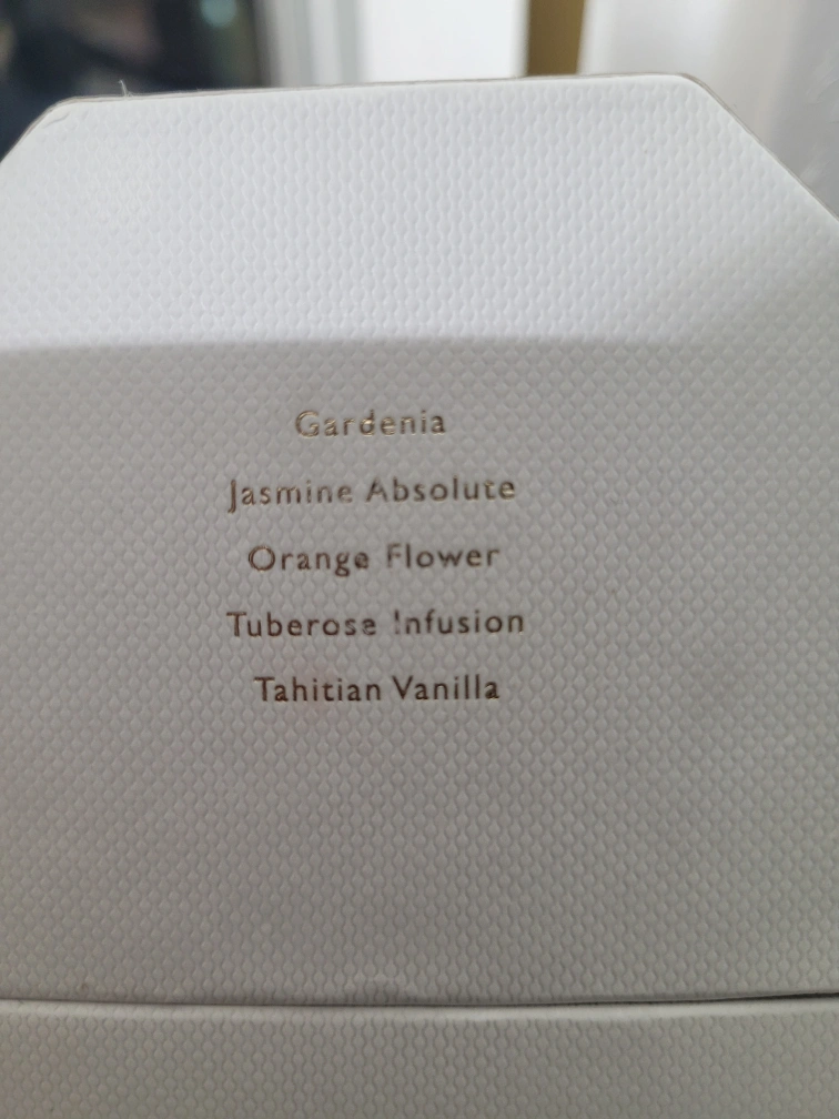 50ml/1.7 fl. oz Eau de Parfum. Floral fragrance. Notes include Gardenia, Jasmine Absolute, Orange Flower, Tuberose Infusion, and Tahitian Vanilla.