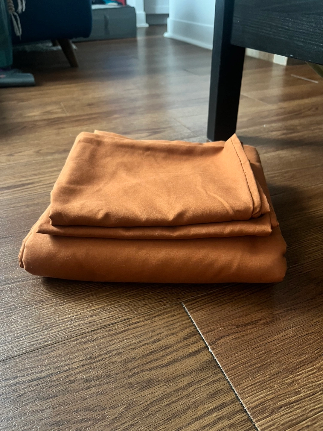 Burnt orange duvet cover set. Includes zippered duvet cover and 2 pillowcases. Soft fabric. Washed and in good condition.