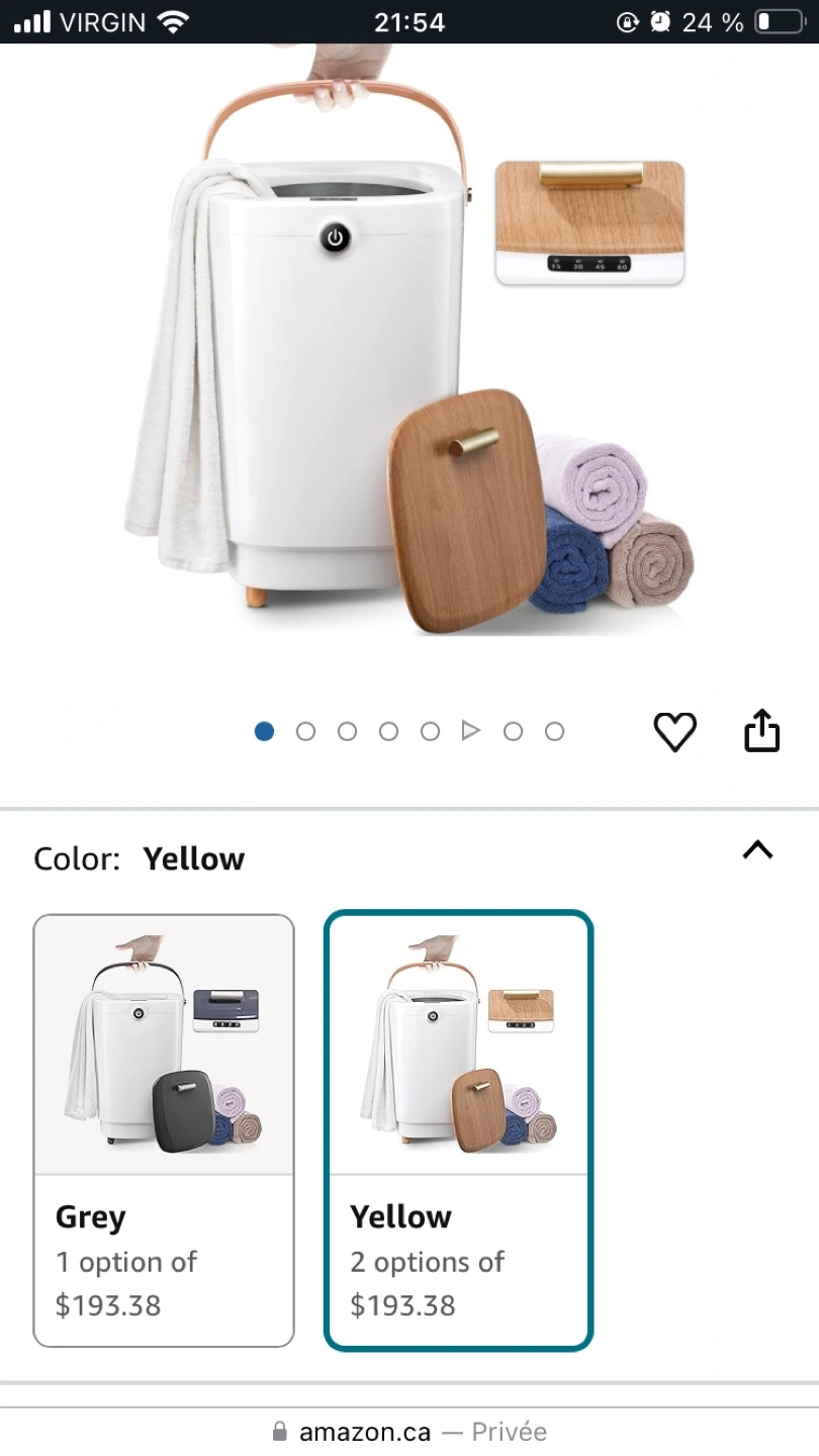 New heated towel warmer bucket. 20 litre capacity. Features timer and heating function. Wooden top and handle. Colour: Yellow.