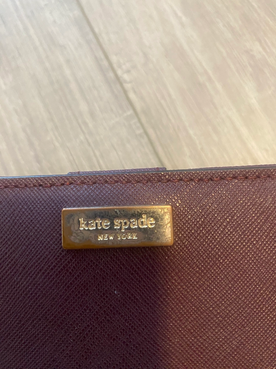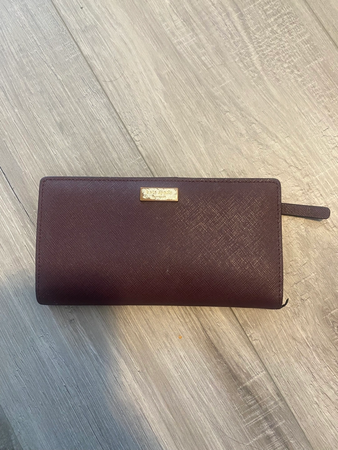 Women's wallet, burgundy colour. Features zip closure, multiple card slots and interior compartments. Good used condition.