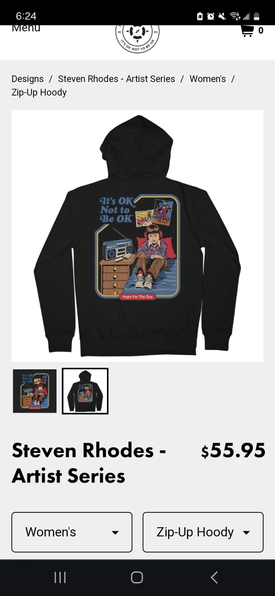 Steve Rhoades "It's okay to not be okay" Zipped Hoodie (S)