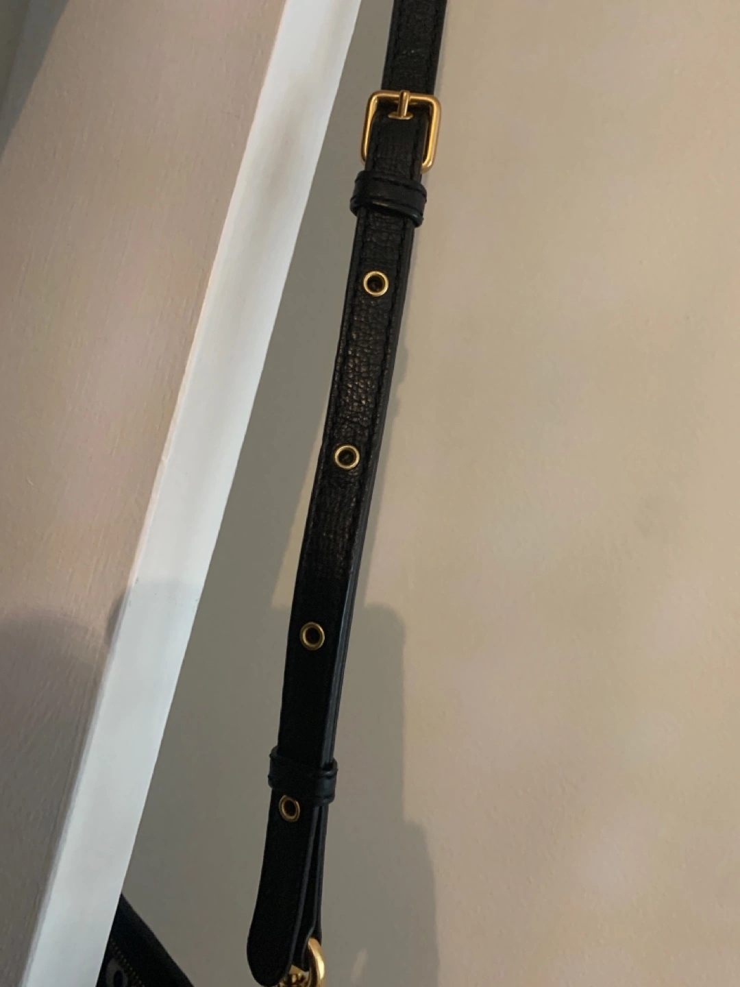Black leather classic Q Percy logo preppy crossbody bag. Gold-toned hardware. Adjustable strap. Small size, perfect for night out and everyday use. Worn only 3 times, in perfect condition.