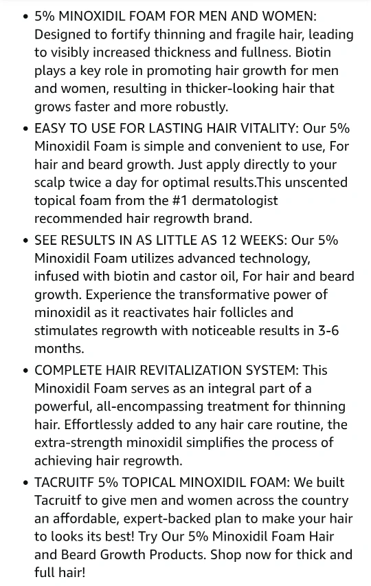 5% Minoxidil Foam - Hair Regrowth Treatment for Men & Women