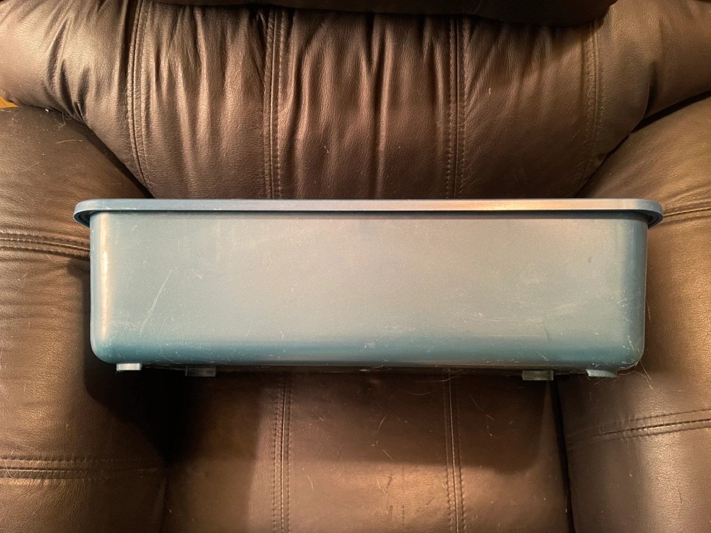 Vintage Blue Plastic Storage Bin with Sliding Tray