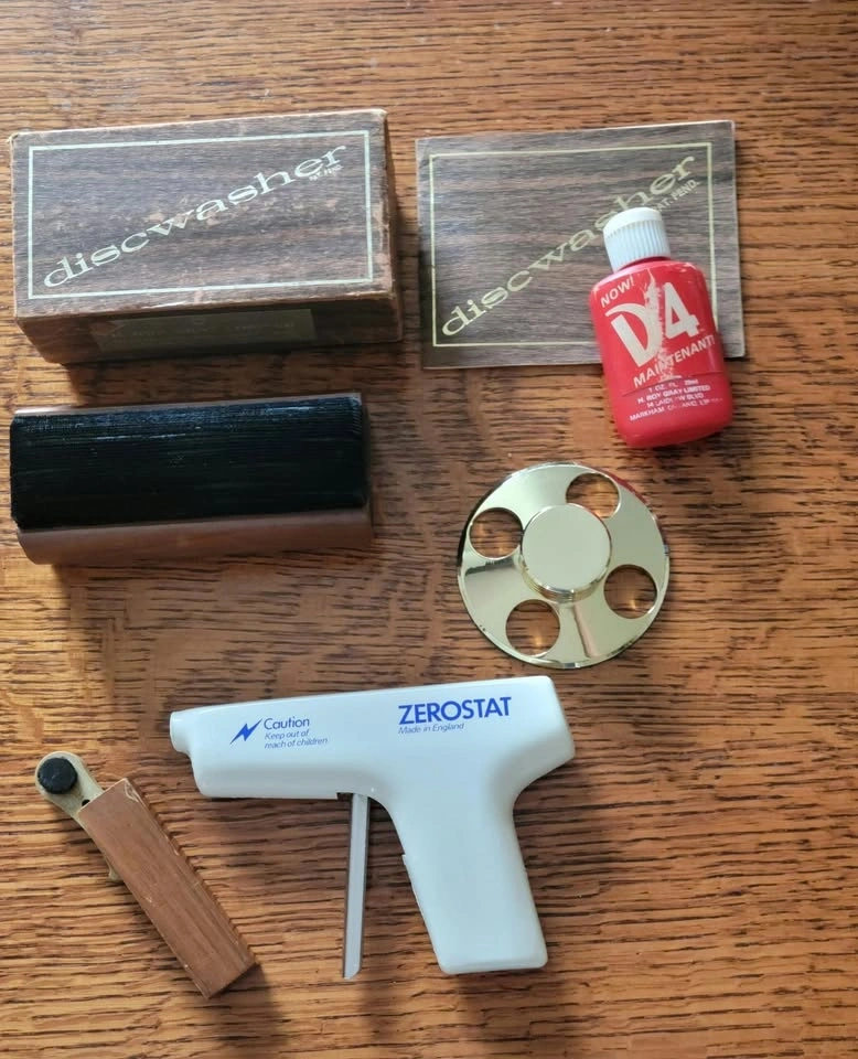 Excellent condition, near mint. Includes a GRADO Prestige Blue 2 Cartridge (approx. 20 hours use on stylus), a Pickering Cartridge (XV-15 / 625E) with an older stylus, a spare Technics headshell, spare screws, and a stylus overhang gauge. Also included are a Discwasher with fluid, turntable record weight, Zerostat, and stylus cleaning brush. Sold as a lot.