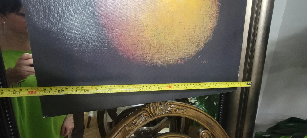 Two framed canvas prints. Each depicts a single pear or a pair of pears. Dark background. Numbered 19 and 25. Approximate dimensions 24" x 18".