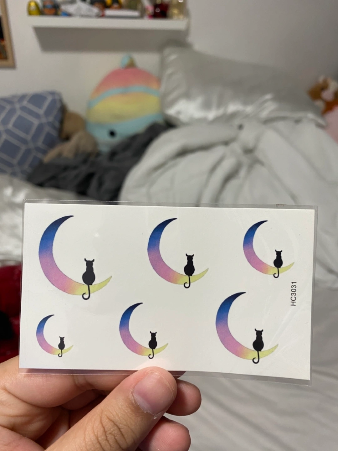 1000+Brand New! Five temporary tattoos. Each features a black cat silhouette sitting on a crescent moon. Gradient colours. Perfect for parties or events. Free! (PICKUP ONLY)