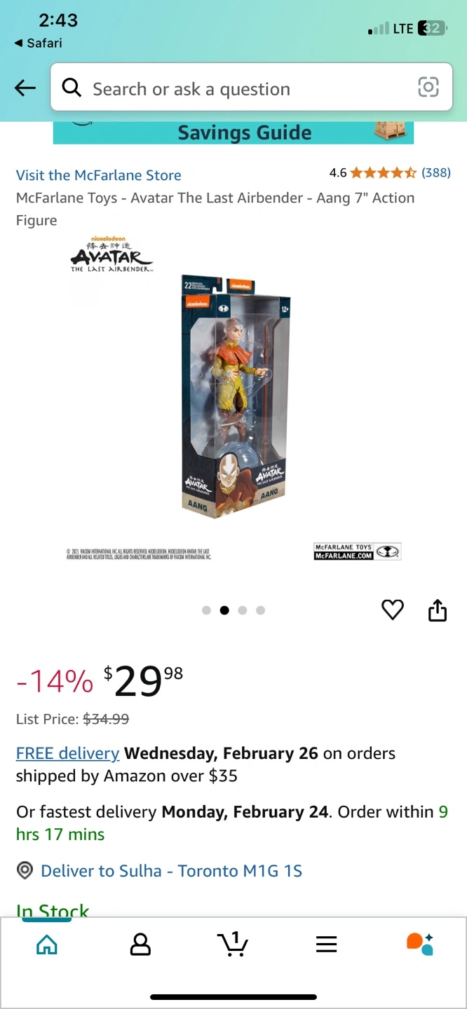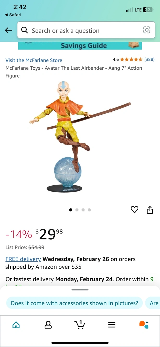 New in box. Aang action figure. Includes staff and accessories. Collectible figure.