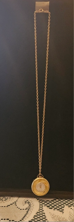Add a touch of vintage charm to your attire with this exquisite 'Lucerne' brand women's pocket watch pendant necklace. Crafted in a gold-colored tone, the detailed filigree detailing exudes timeless elegance and sophistication.