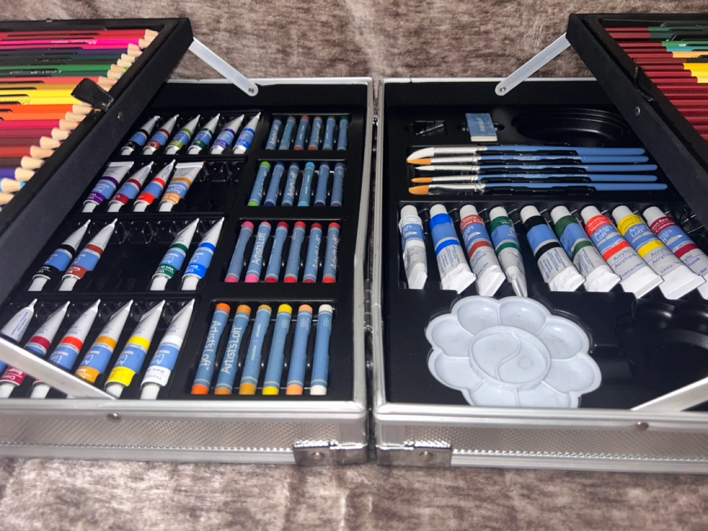 Artist's Carry Case with Colour Pencils, Paints, and Brushes