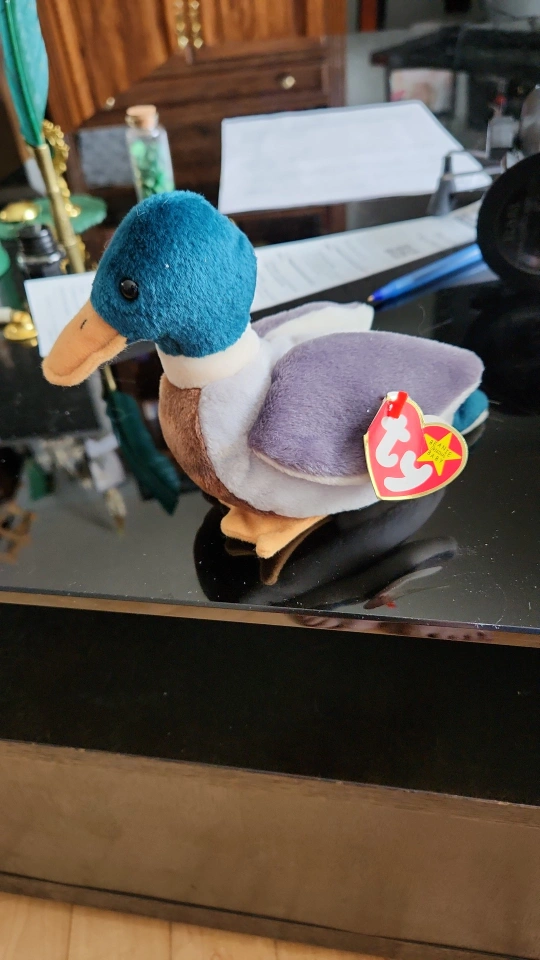 Collectible Beanie Baby. Plush mallard duck. Comes with original Ty tag. "Jake".