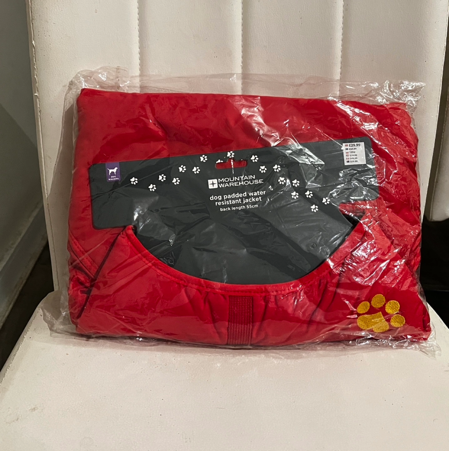 Brand new, Mountain Warehouse water-resistant, padded dog jacket. Back length 55cm.