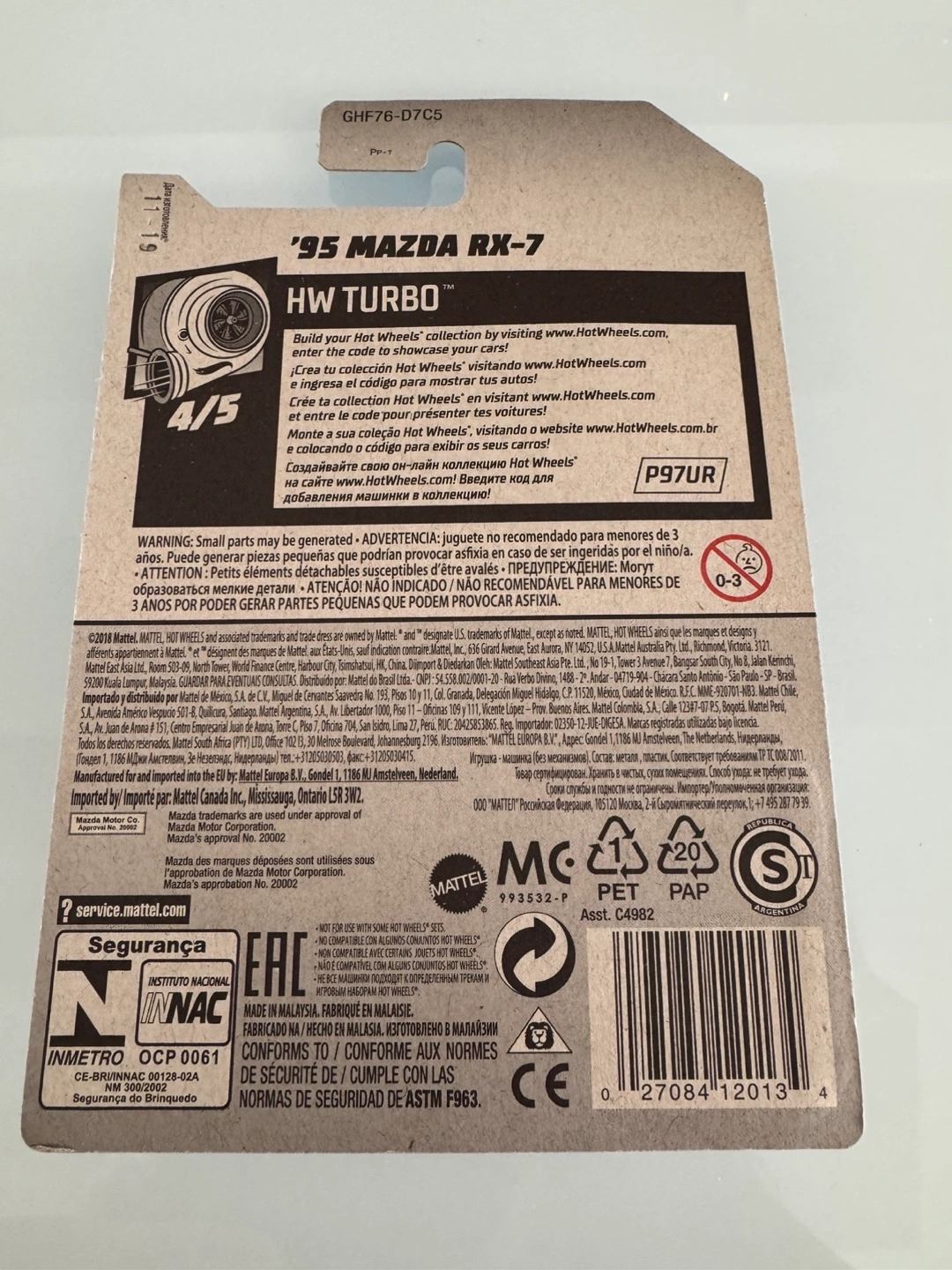 26HOT WHEELS ‘95 MAZDA RX-7 DIECAST MINT BLUE