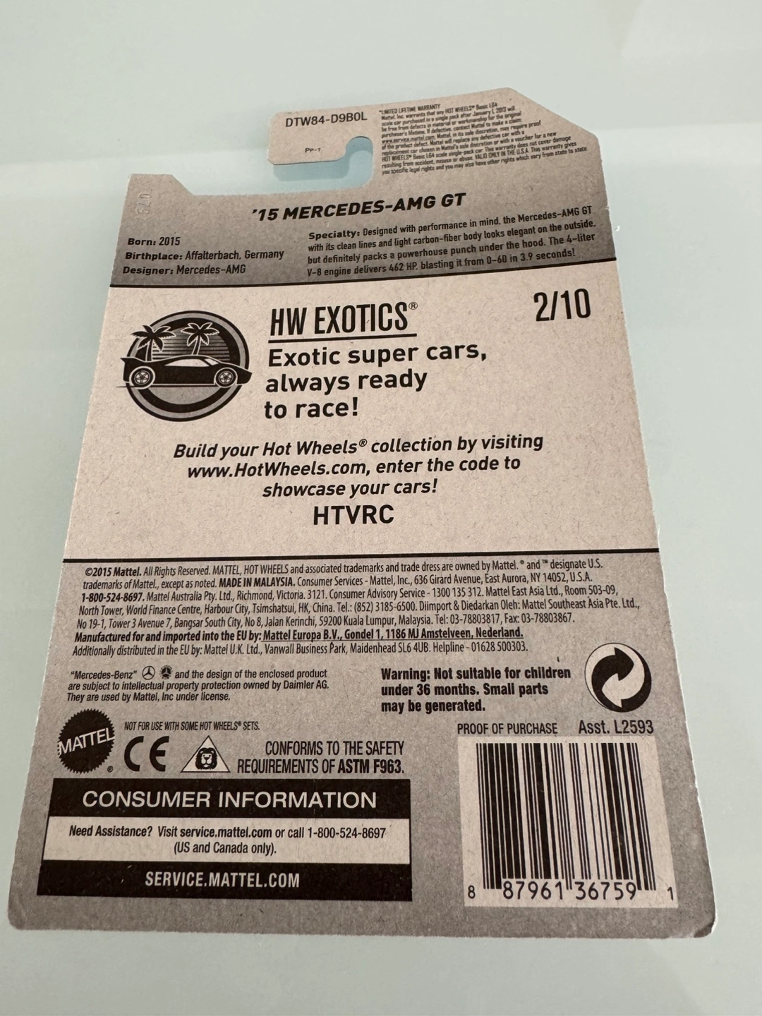 26HOT WHEELS ‘15 MERCEDES AMG GT YELLOW DIECAST MINT