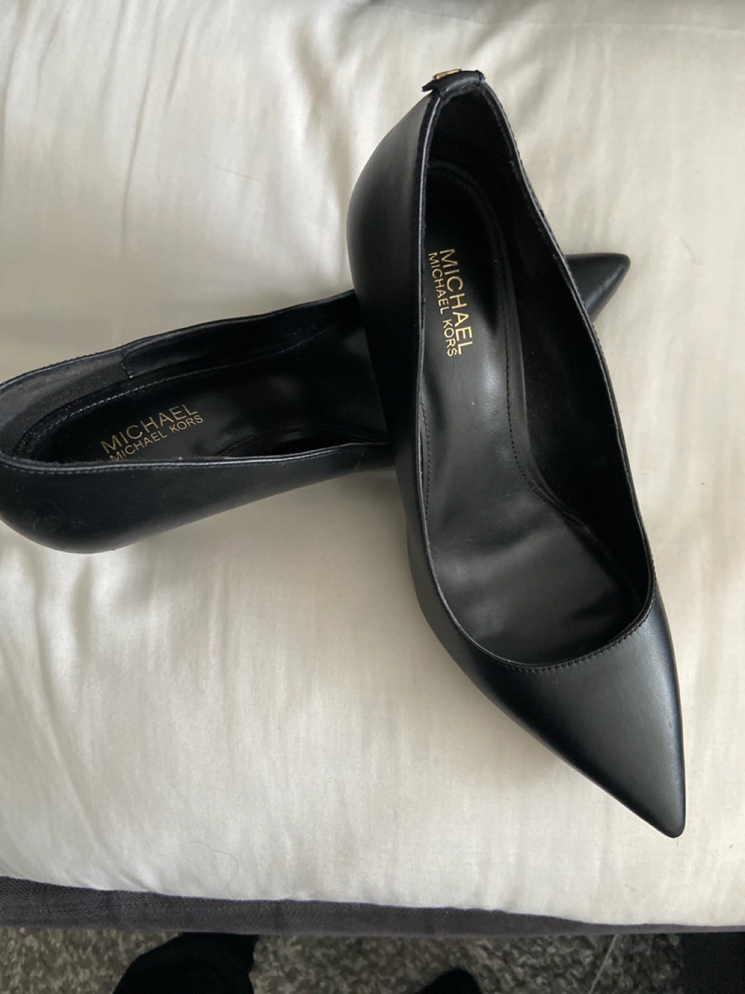 1000+Elegant black leather pointed-toe heels. Stylish and comfortable. Slight wear, see photos.