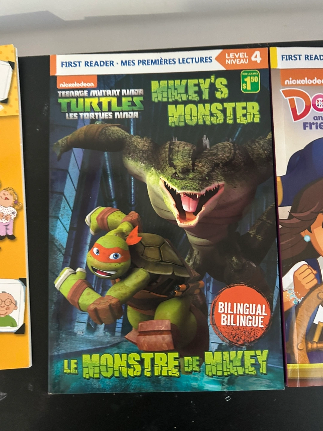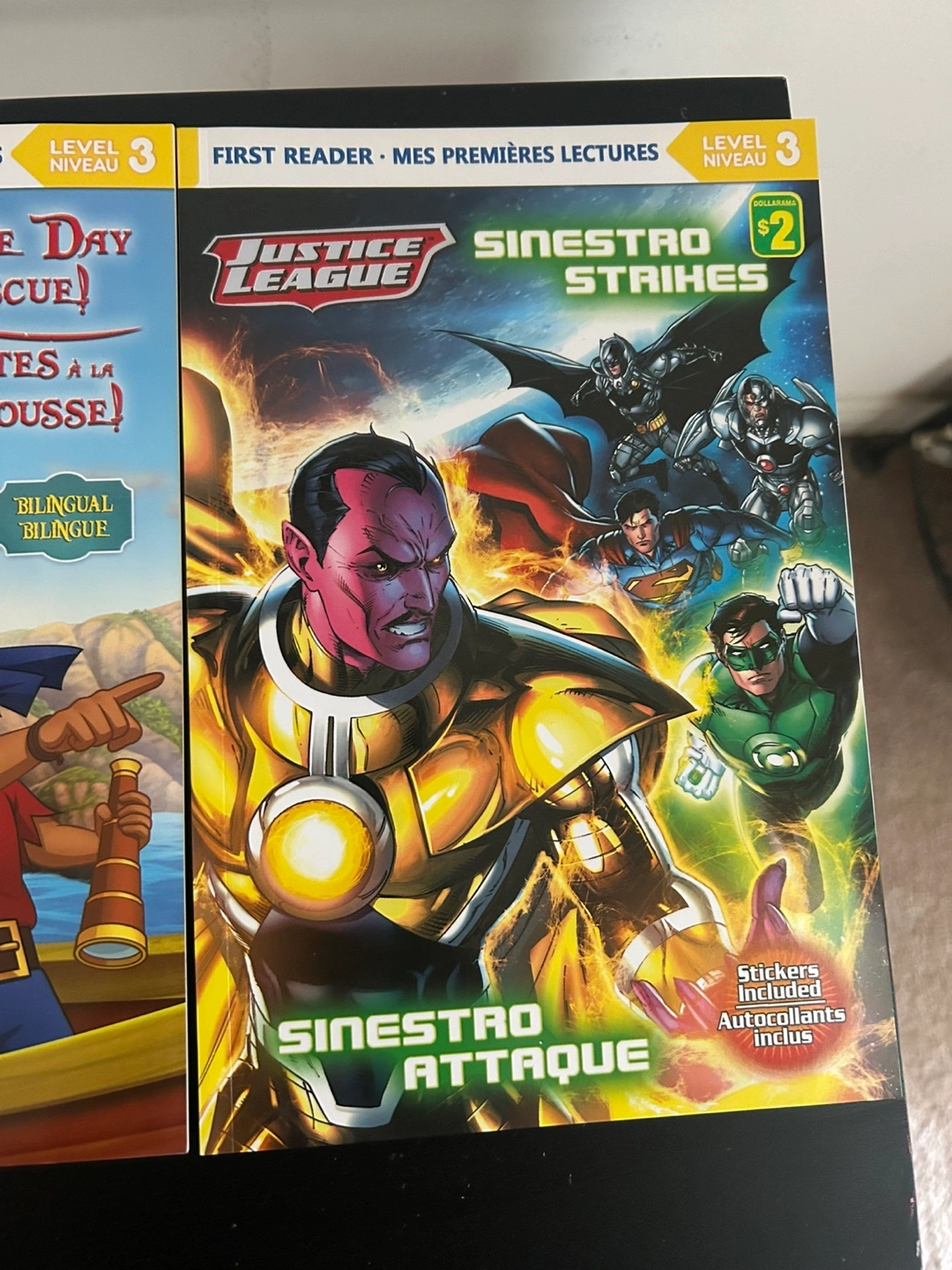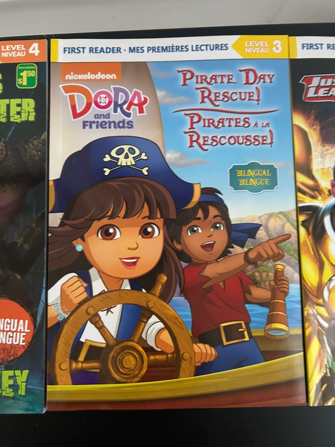 Bundle includes Usborne Everyday Words French flashcards, Berlitz Kids French flashcards, Paw Patrol bilingual book, Sleep Tight Little Wolf bilingual book, and Am I Small? bilingual book. Great for young learners. Used but in good condition.