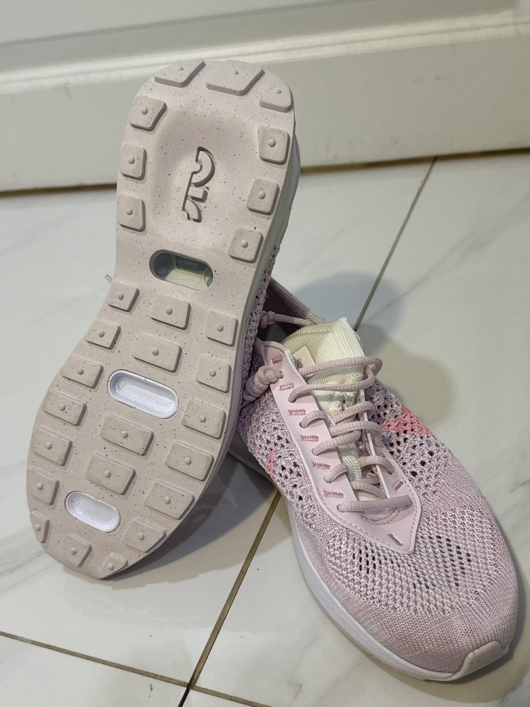 Lightweight knit upper. Comfortable cushioning. Stylish pale pink colour. Great for everyday wear or workouts.