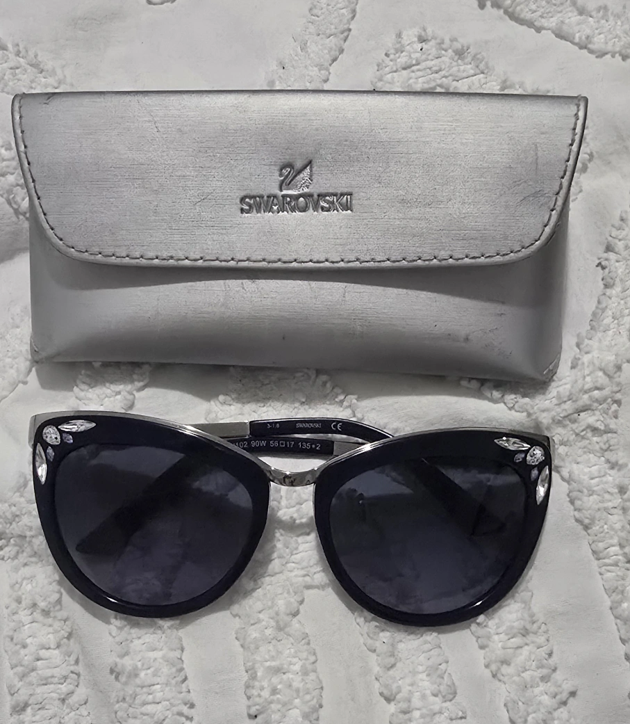 Discontinued Rare Stylish dark blue cat-eye SWAROVSKI sunglasses. Silver accents and crystals. Comes with a silver case.