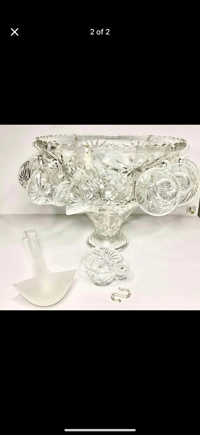 Anchor Hocking Crystal Punch Bowl With 12 Punch Glasses. Perfect for holiday hosting.